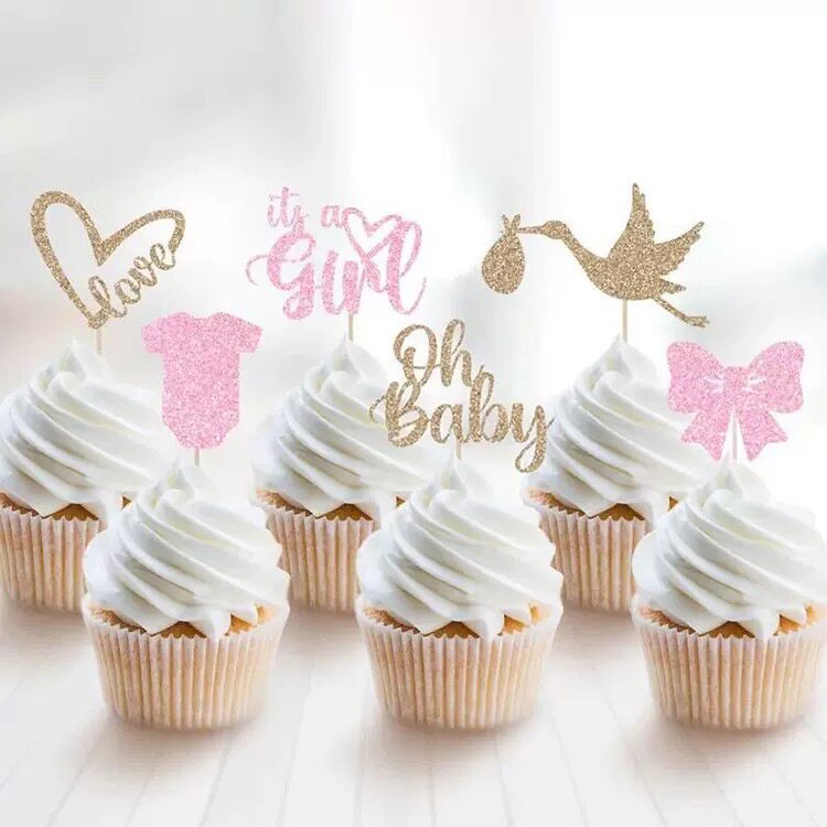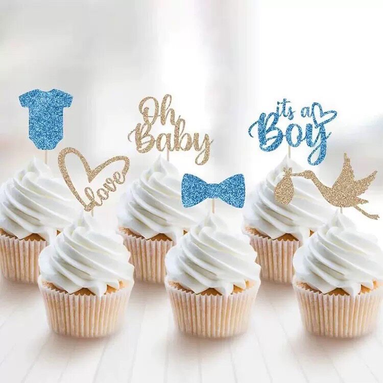 📚 性别揭示babyshower迎婴派对装饰纸杯蛋糕甜品插旗boy girl插牌