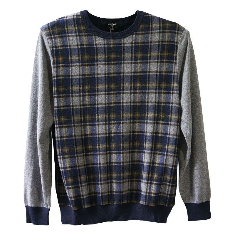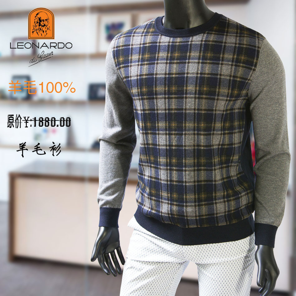 📚 LEONARDO利奥纳多老人头冬季休闲套头圆领格子长袖纯羊毛衫0629