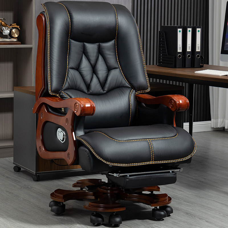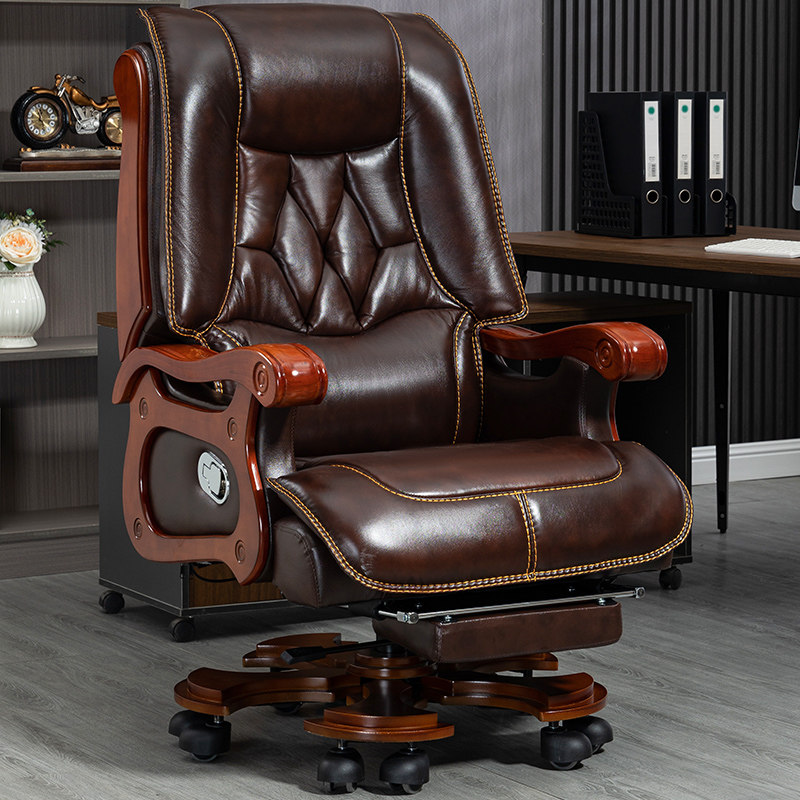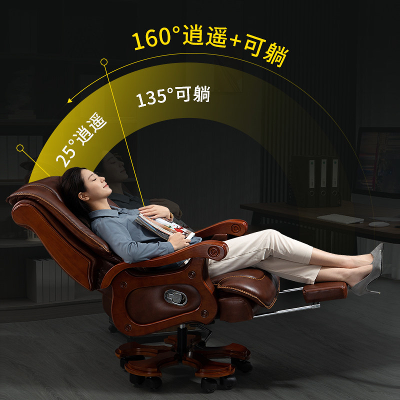 📚 老板椅办公室家用电脑椅真皮可躺商务舒适久坐靠背转大班椅座椅