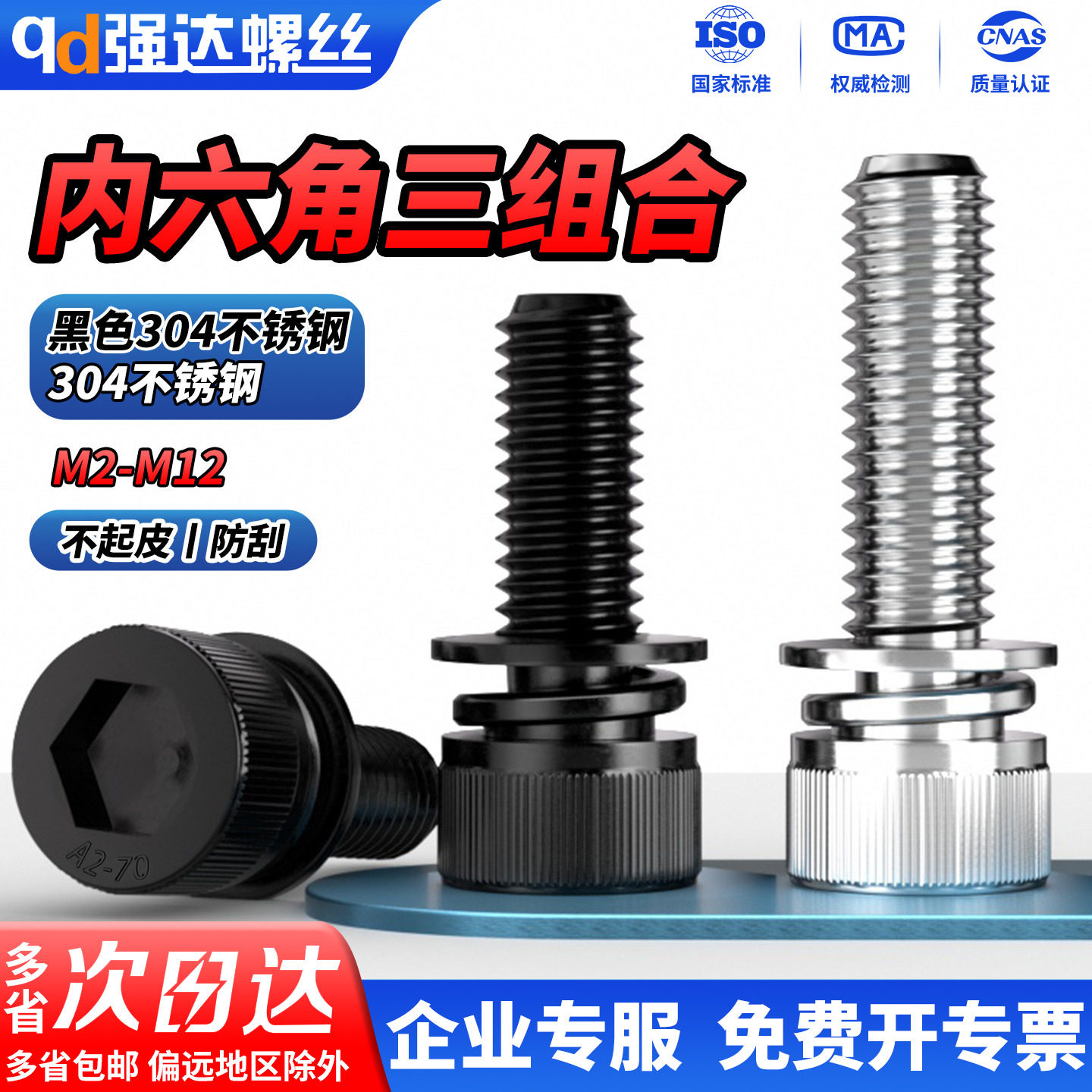 📚 QD黑色304不锈钢杯头内六角三组合螺丝圆柱头螺钉螺栓2M3M4M5-M12