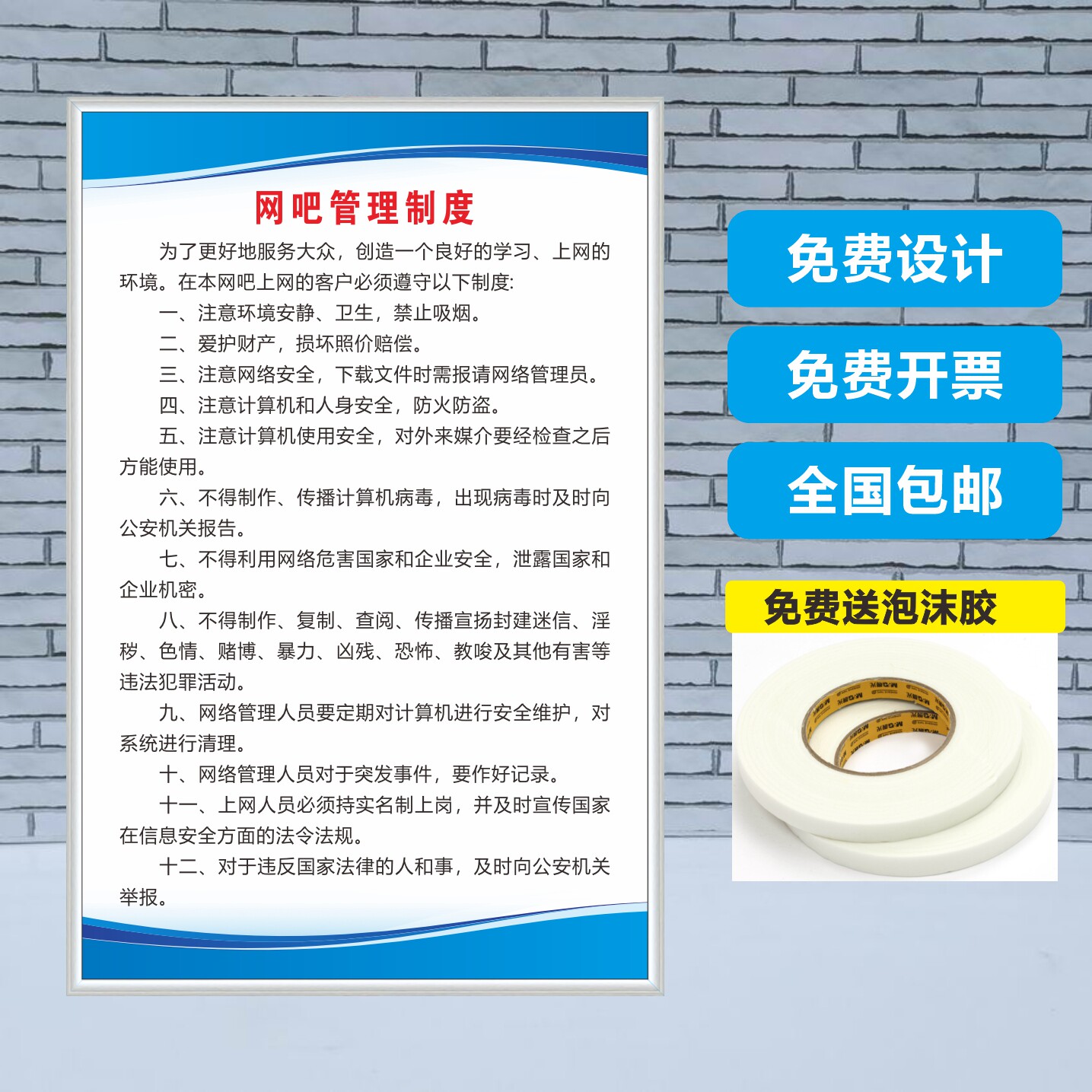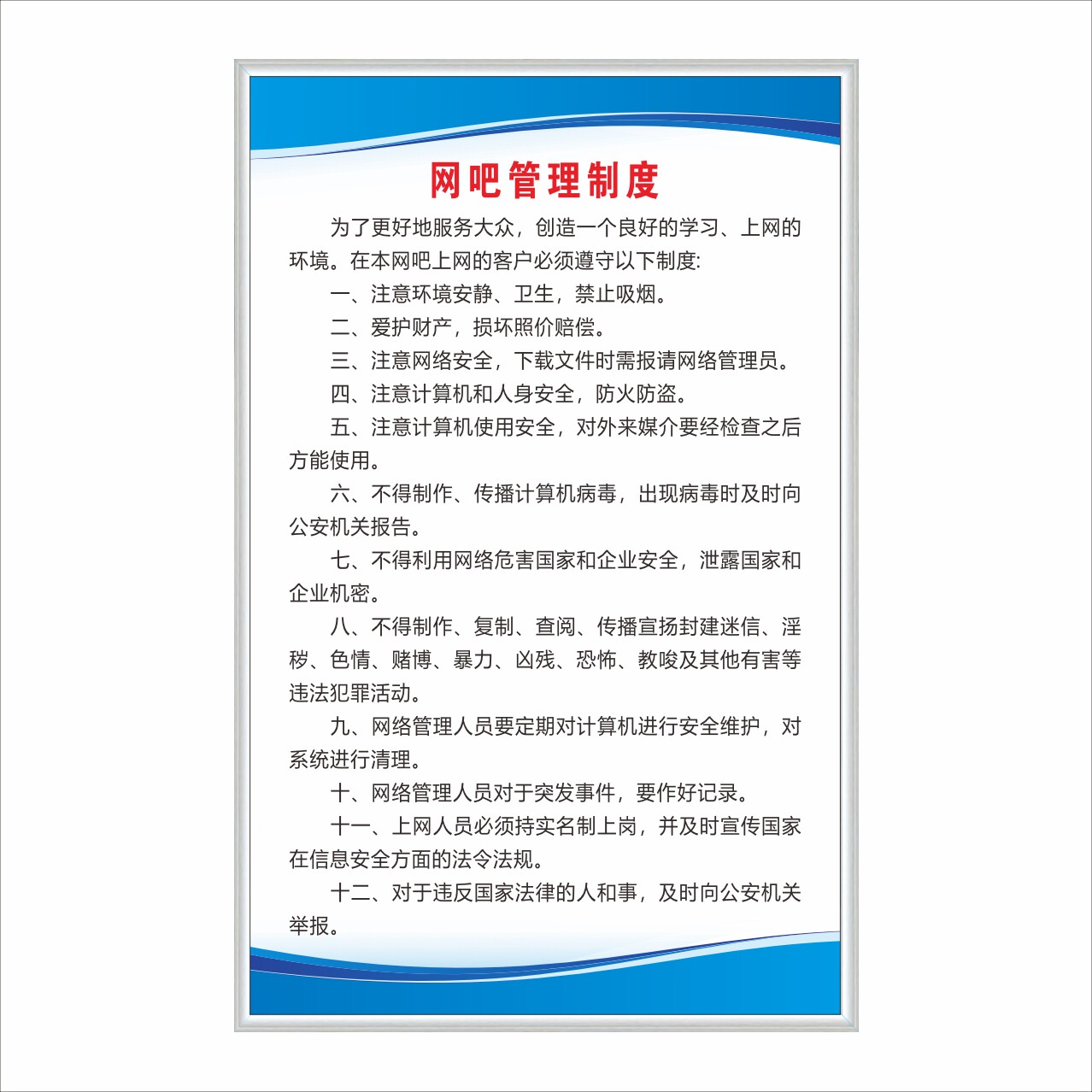 📚 网吧经营管理规章制度牌消防安全网络安全卫生管理网吧控烟标识牌