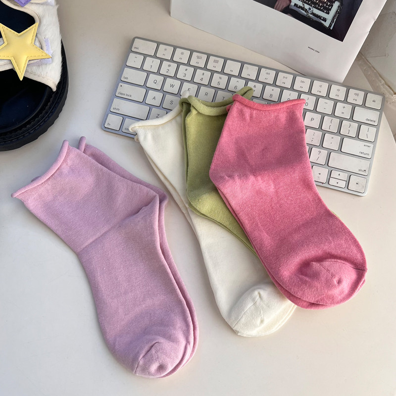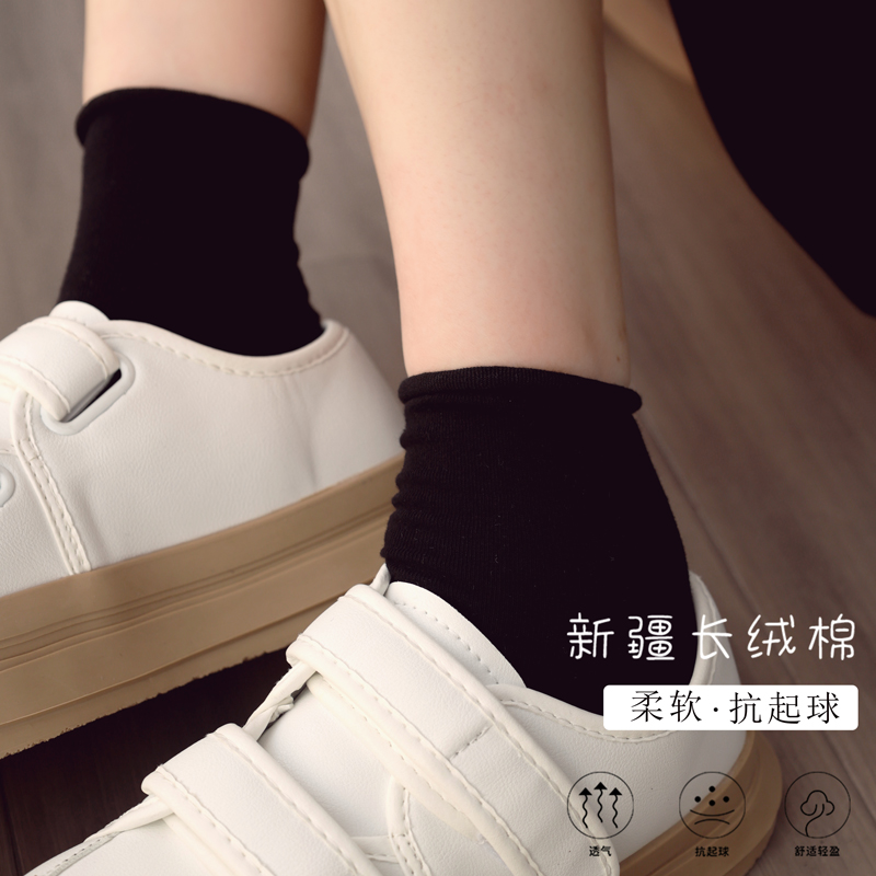 📚 小白袜女夏季纯棉透气韩国东大门新款袜子黑色卷边短堆堆配小皮鞋