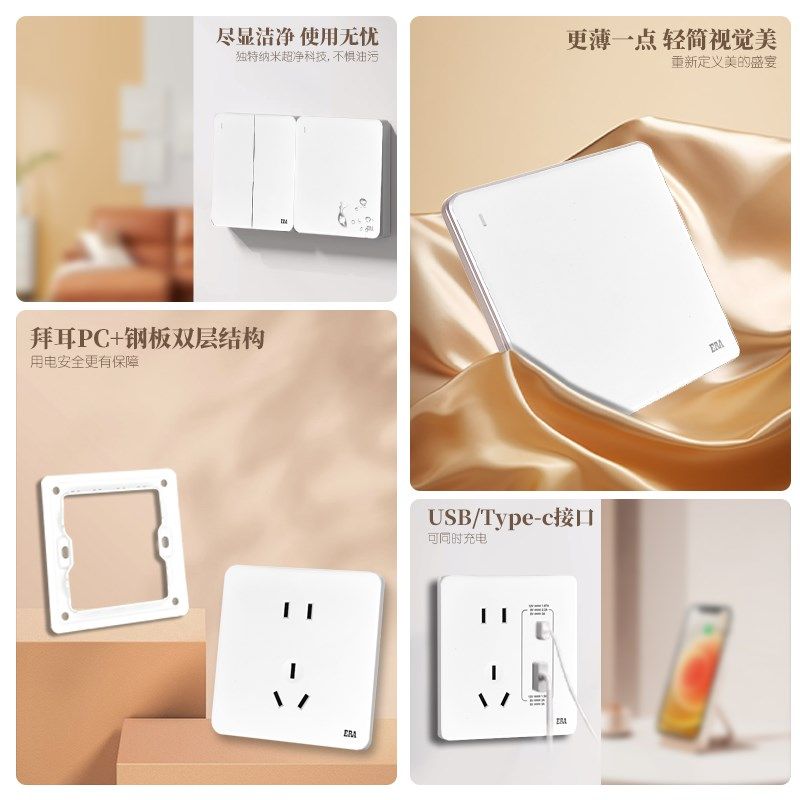 📚 公元开关插座面板16A空调一开五孔E21白墙壁86型暗装超薄全屋双控