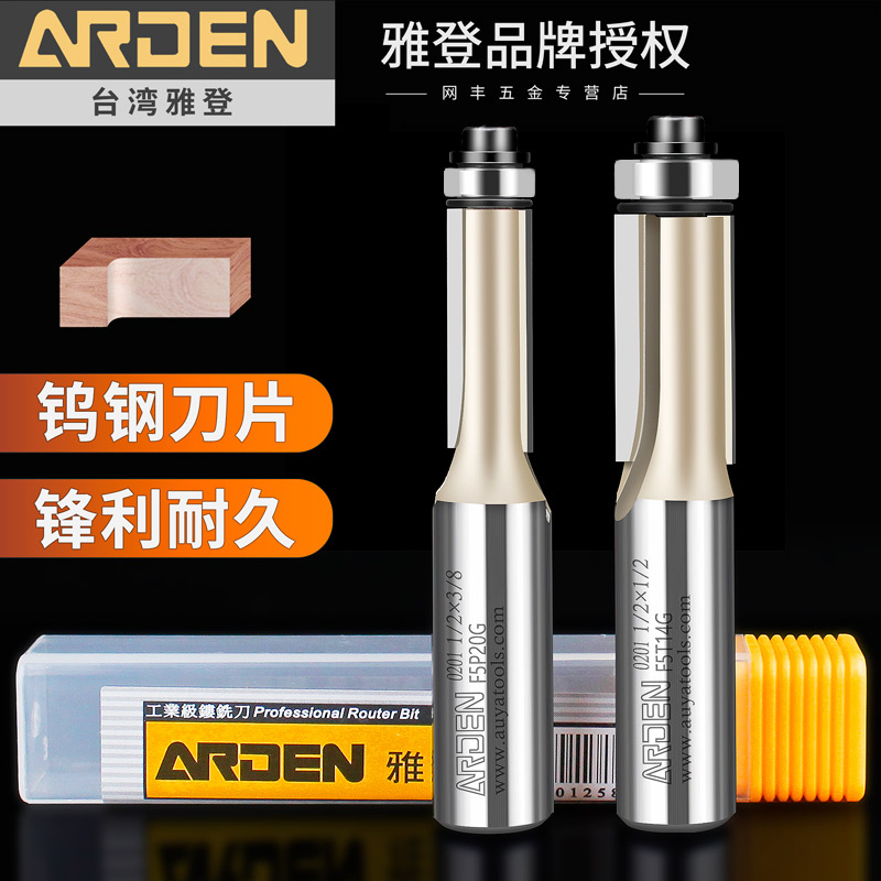 📚 台湾雅登加长修边刀具木工修边机电木铣双刃滚珠带轴承直铣刀头