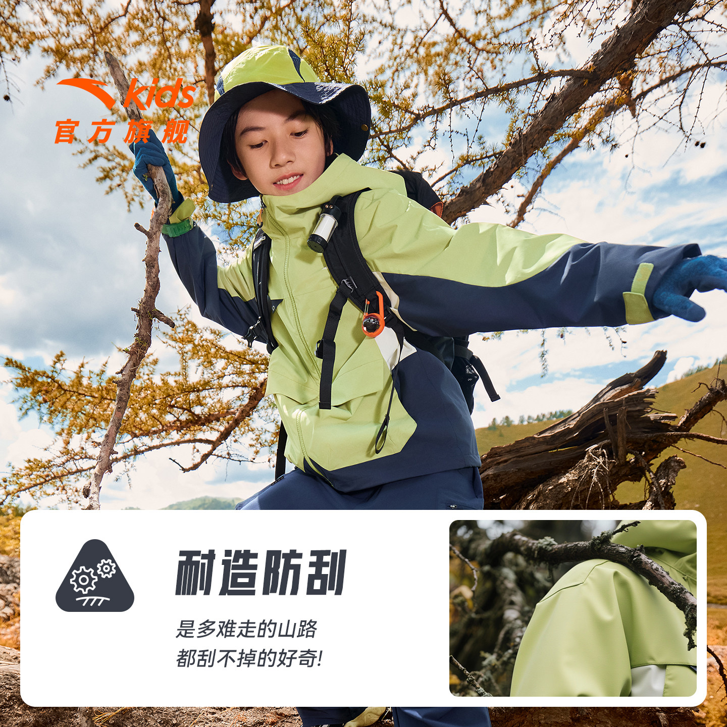 📚 安踏儿童男大童丝光绒运动上衣2025冬保暖撞色大童防水厚外套