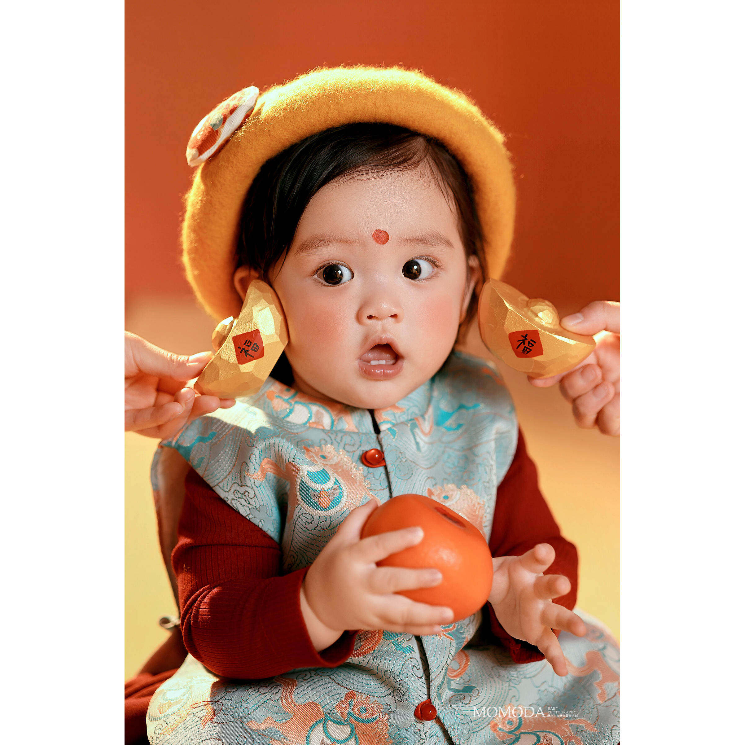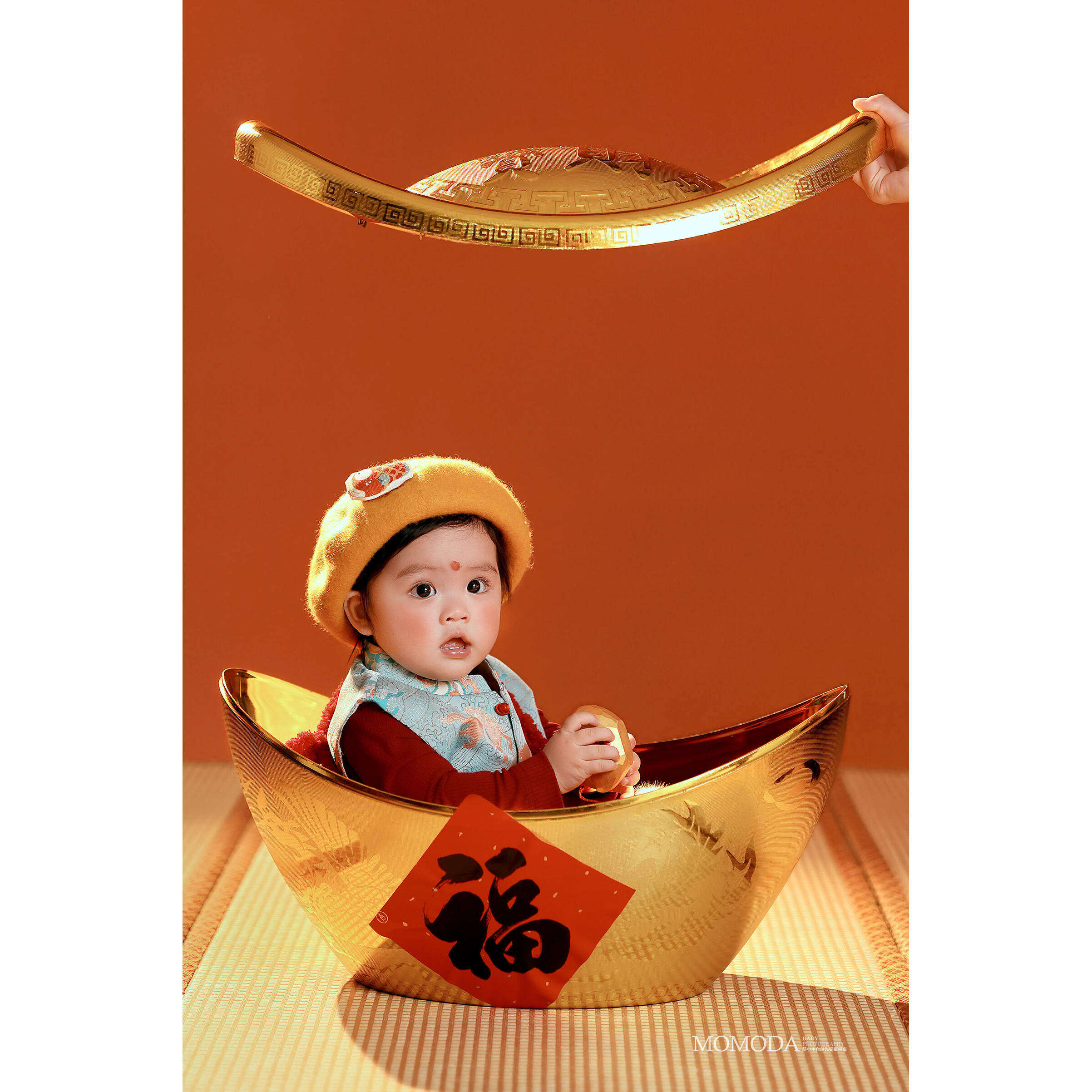 📚 新中式新年儿童摄影服装周岁复古年画娃娃红色过年道具喜庆金元宝