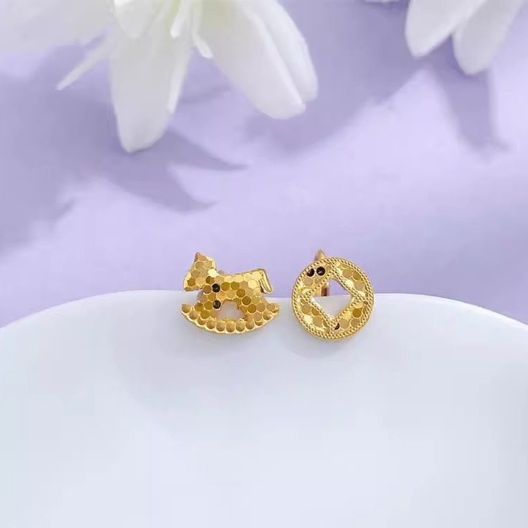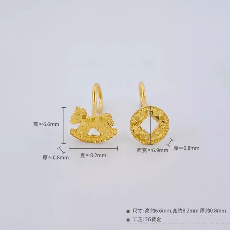 📚 马上有钱999足金耳钉AB款5G黄金摇摇马鱼鳞金币耳饰生肖马年耳钩