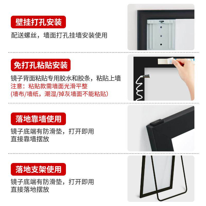 📚 简约立体全身镜子贴墙自粘全身镜壁挂墙衣帽间全身镜家用落地镜