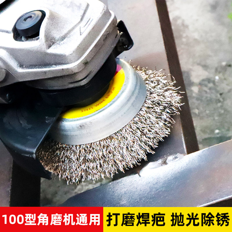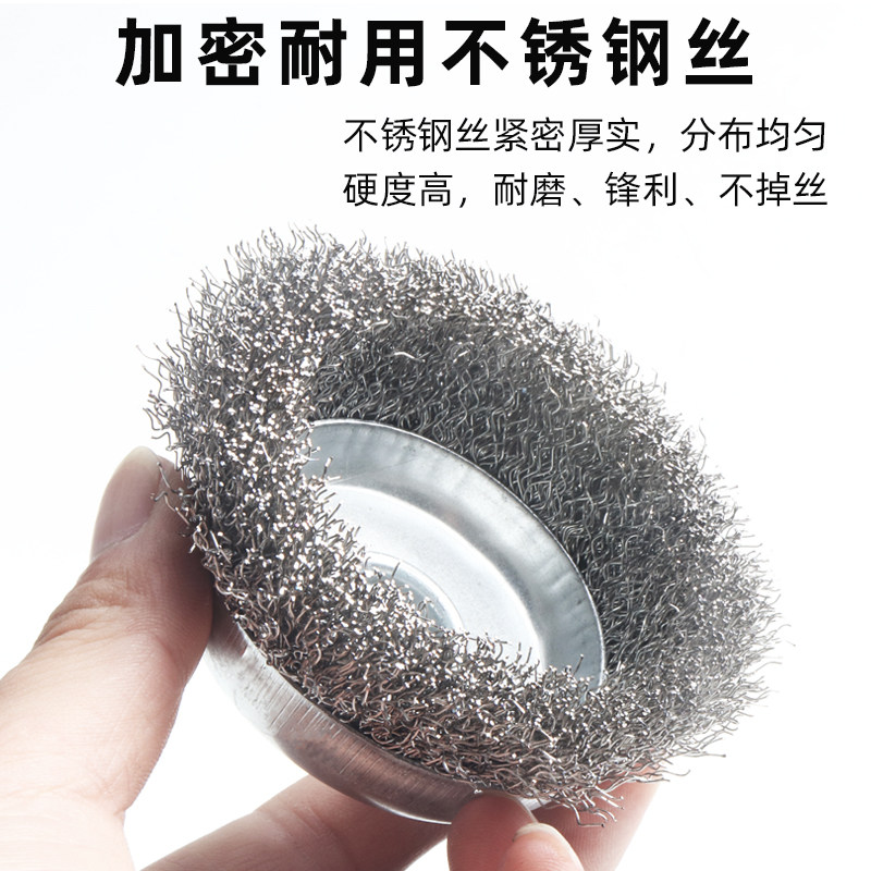 📚 304碗型钢丝轮100型角磨机用不锈钢打磨球金属除锈抛光 4寸钢丝刷