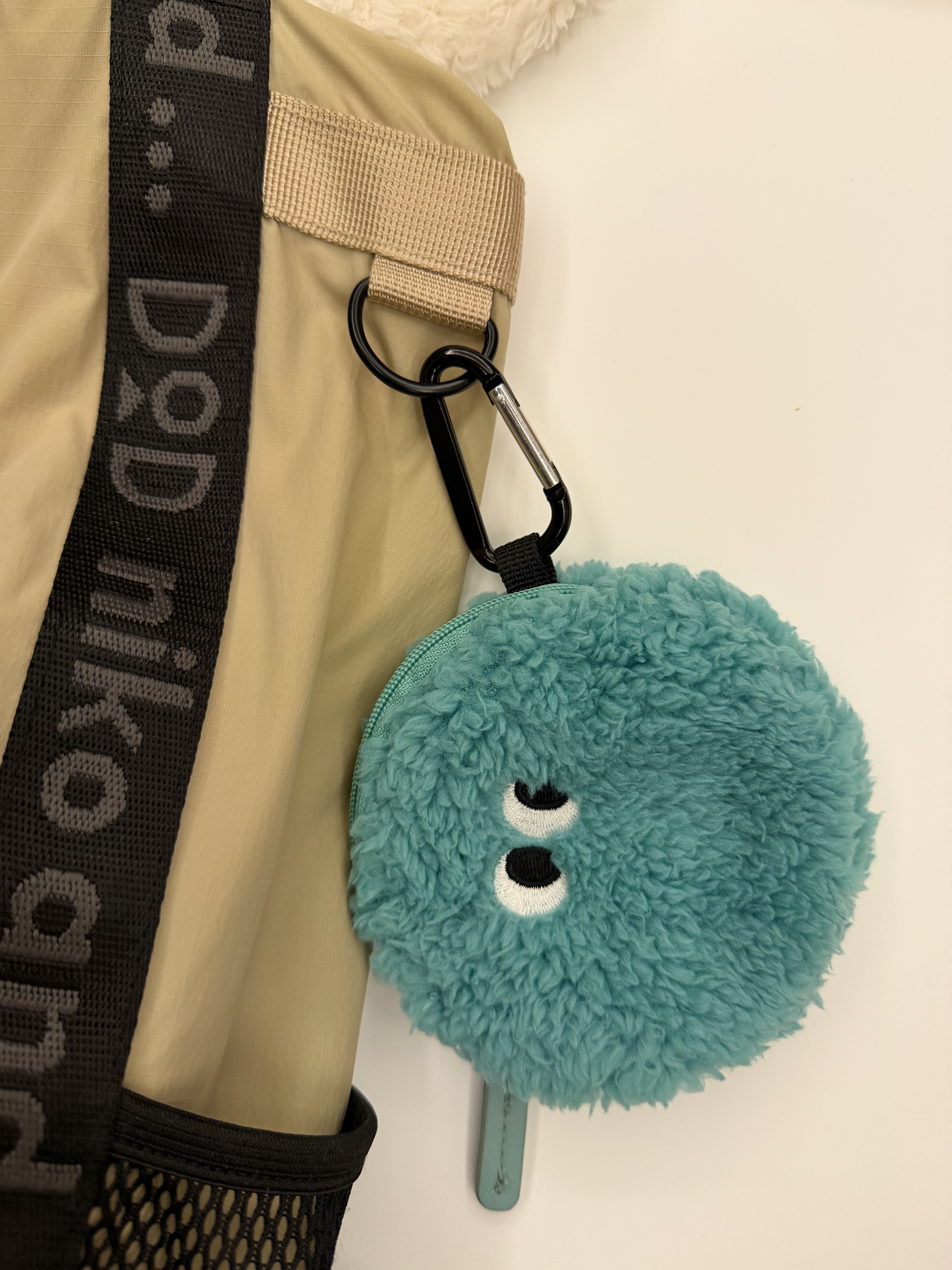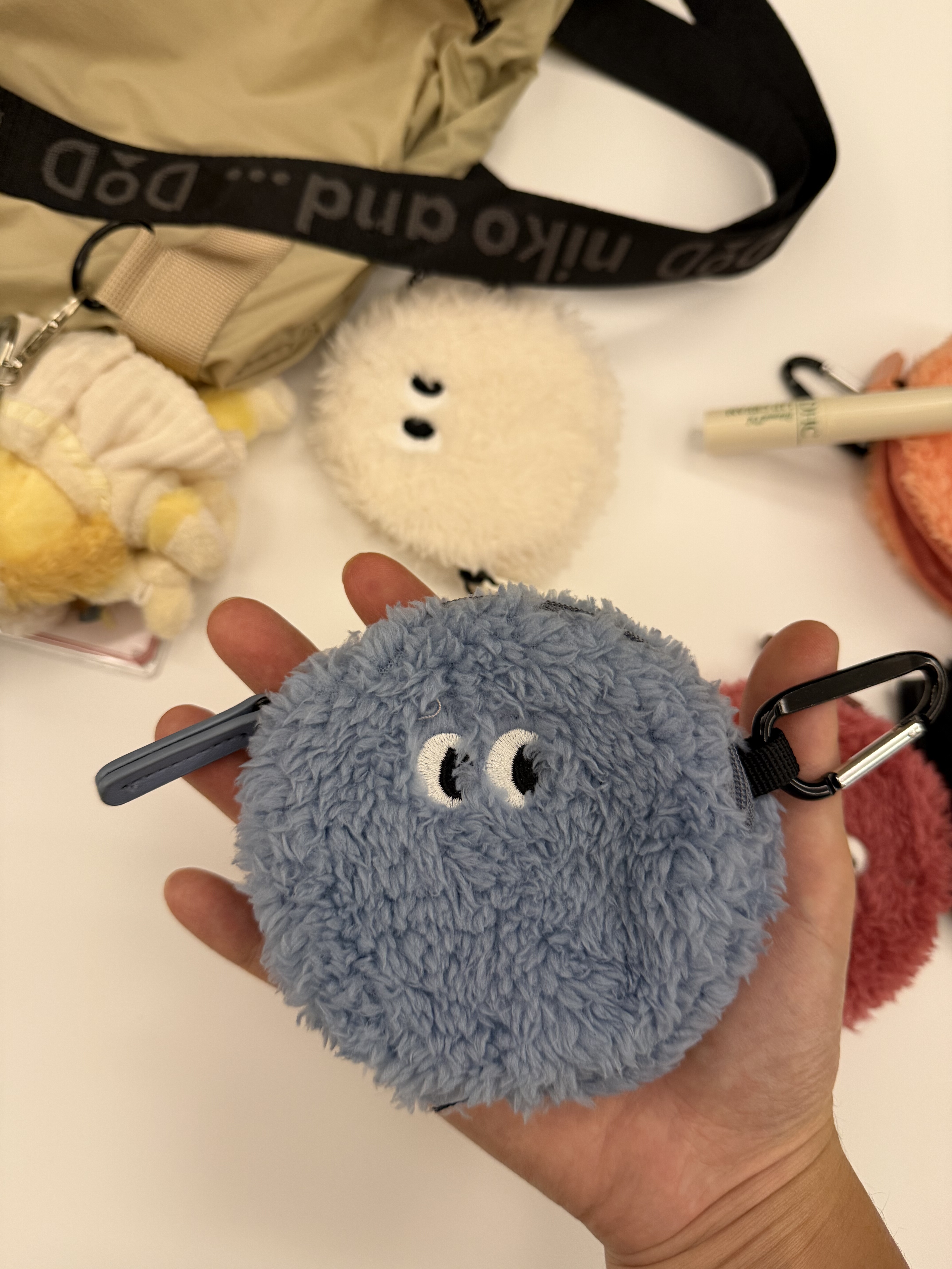 📚 日单可爱卡通饭团毛绒刺绣零钱包耳机包 不规则圆形 附挂钩