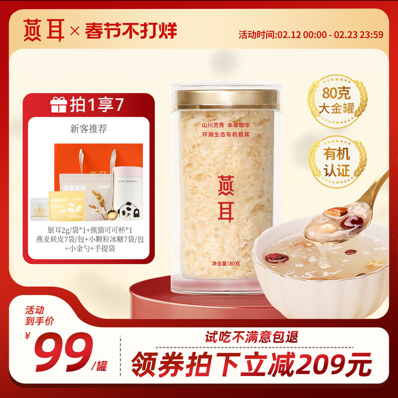 📚 燕耳环湖生态有机银耳干货80g金丝银耳免煮冲泡即食羹官方旗舰店