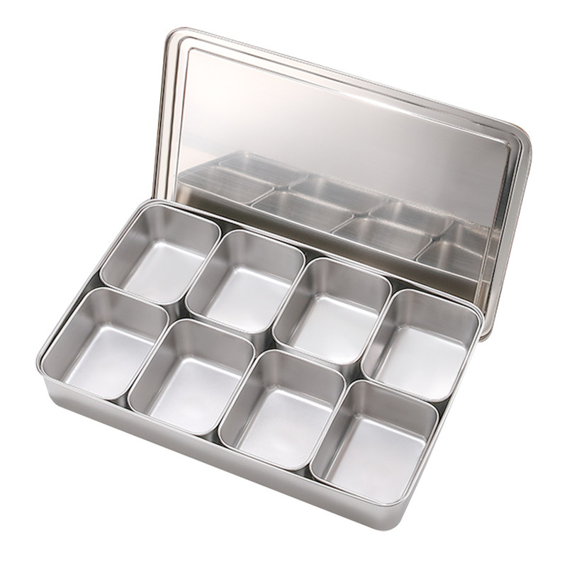 📚 小料盒商用摆摊专用调料盒冰粉配料多格调料罐不锈钢厨房调味盒子