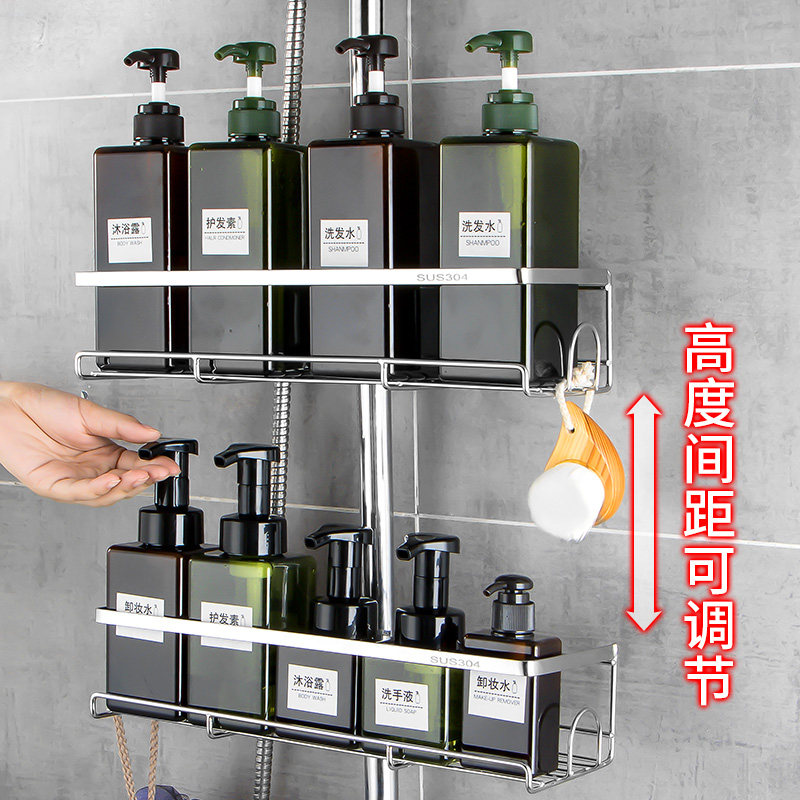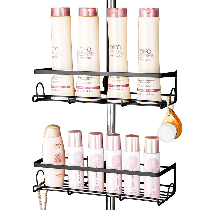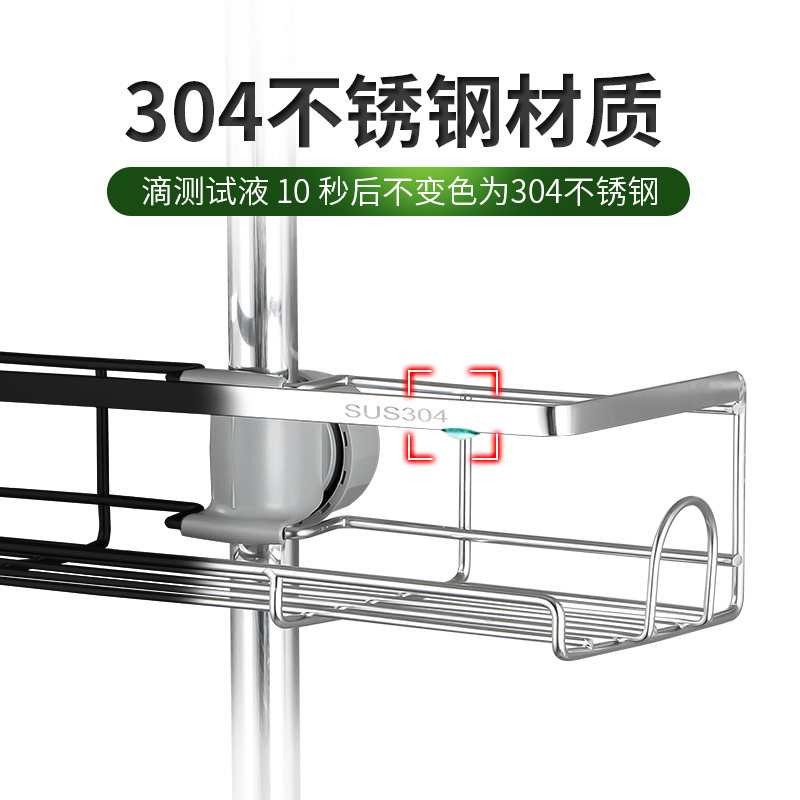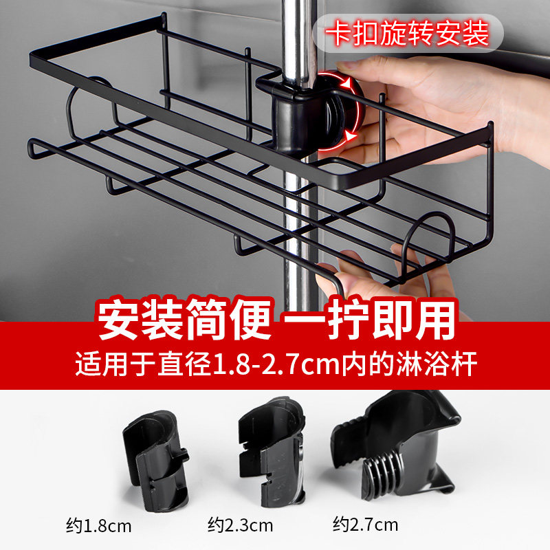 📚 洗澡间花洒置物架淋浴杆托盘浴室免打孔不锈钢黑色沐浴露收纳架子