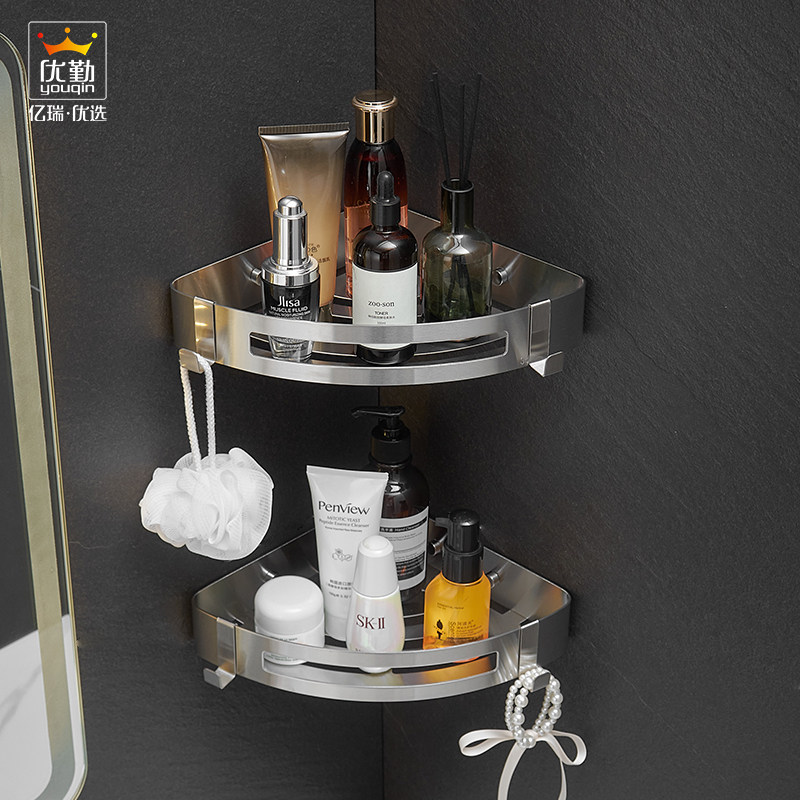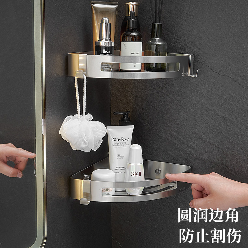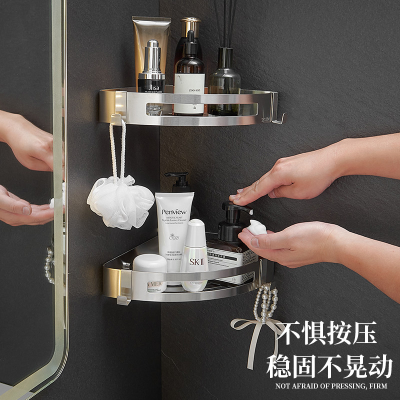 📚 卫生间浴室置物架三角不锈钢壁挂式免打孔转角厕所洗手洗澡间收纳