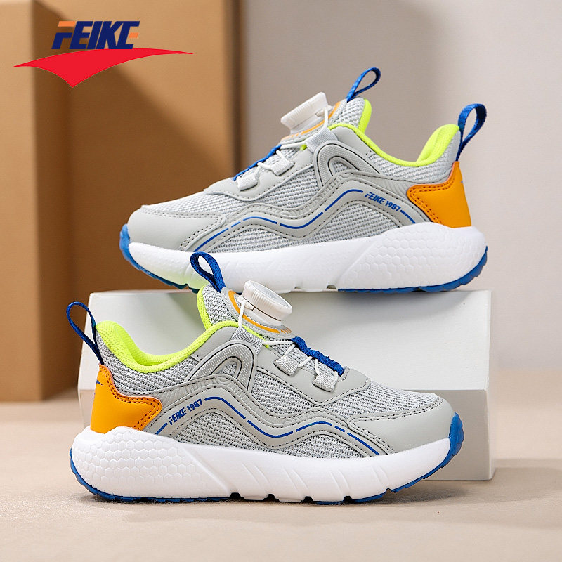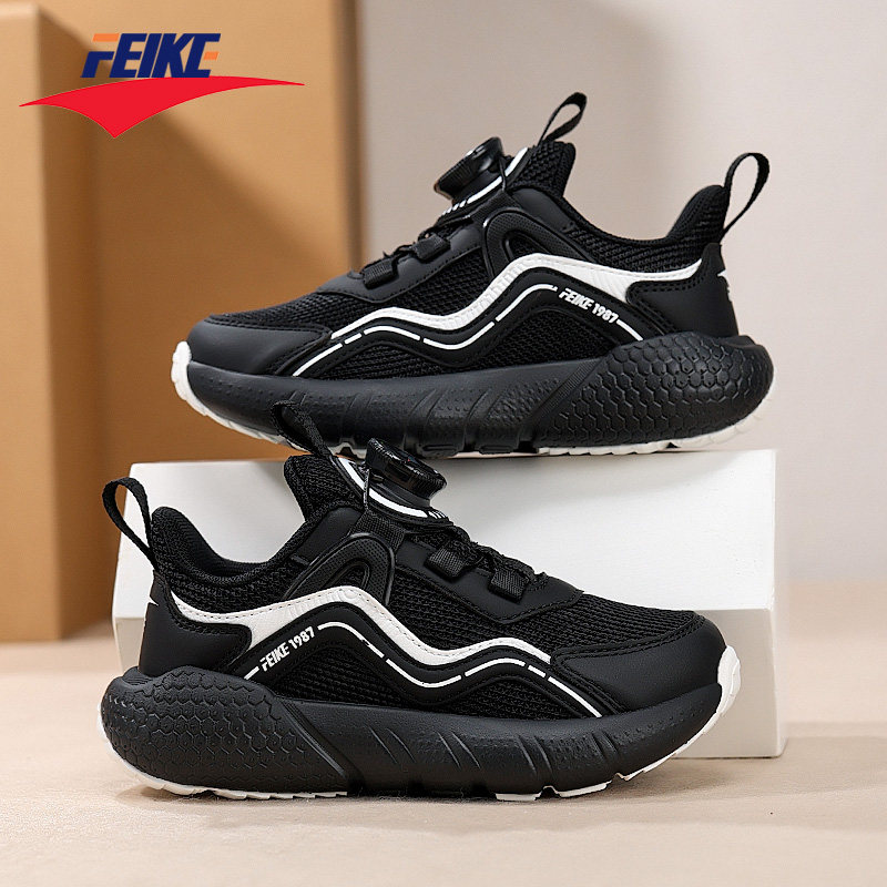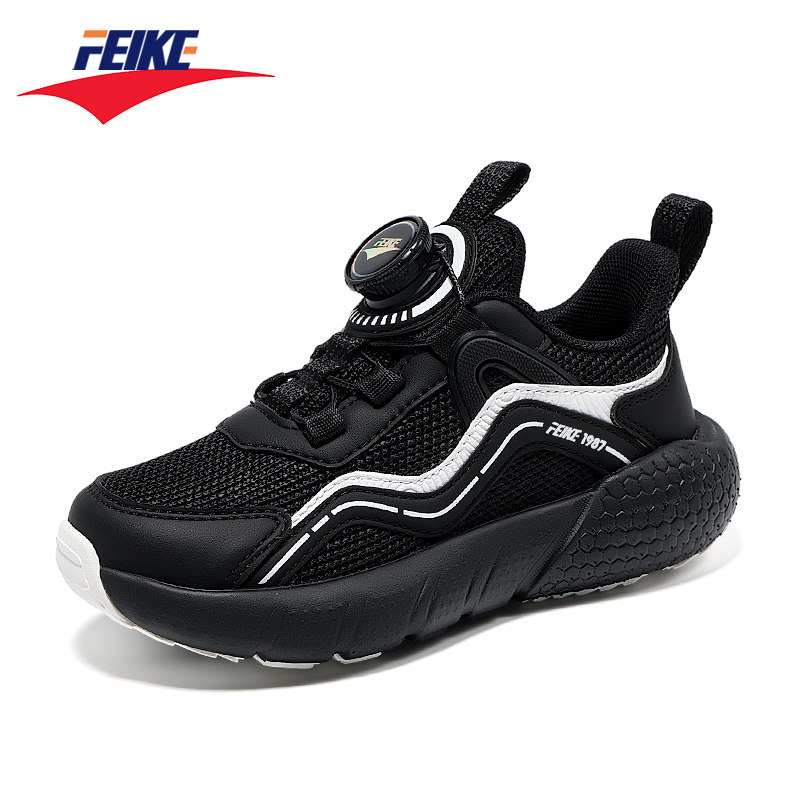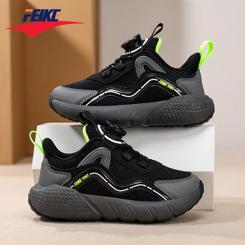 📚 菲克童鞋男童旋转扣运动鞋2026春秋新款网面透气黑色儿童跑步鞋子