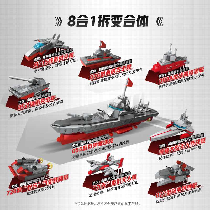📚 启蒙奇妙积木现代海军编队055型导弹驱逐舰组装模型男孩拼装玩具