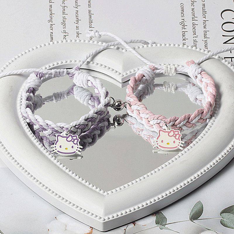 🎀揭秘少女心小物,入手高颜值可爱KT猫编织情侣磁吸手链,让你爱不释手!
