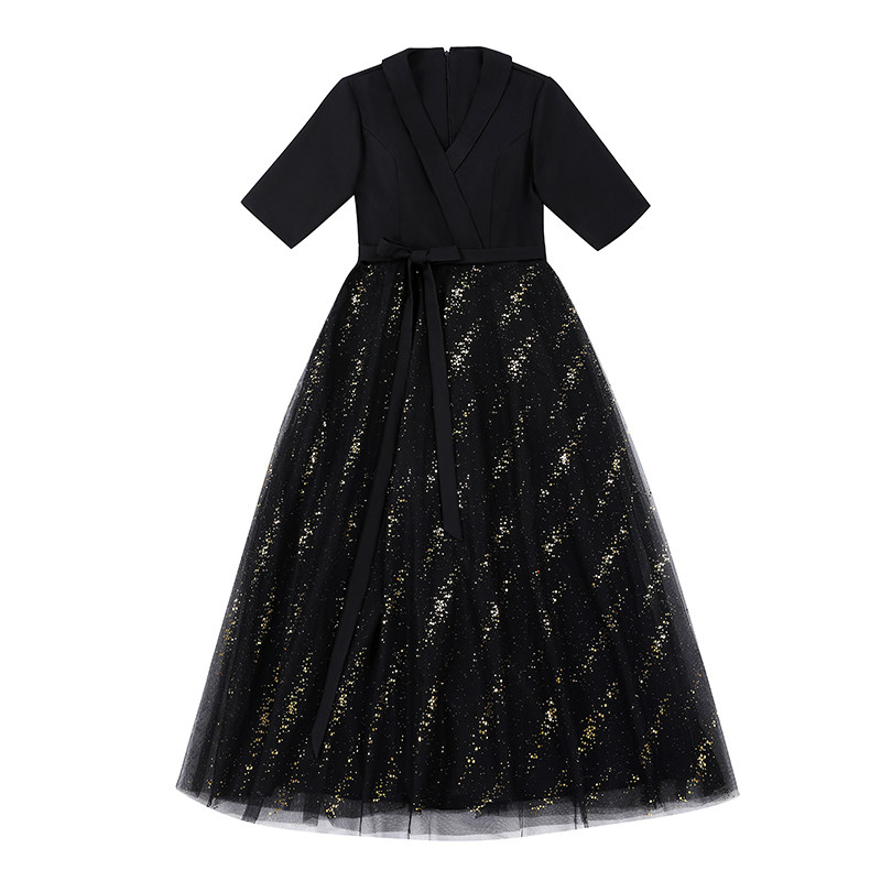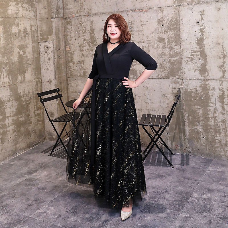 📚 大码晚礼服女胖mm宴会主持年会演出服高端轻奢加肥加大黑性感气质