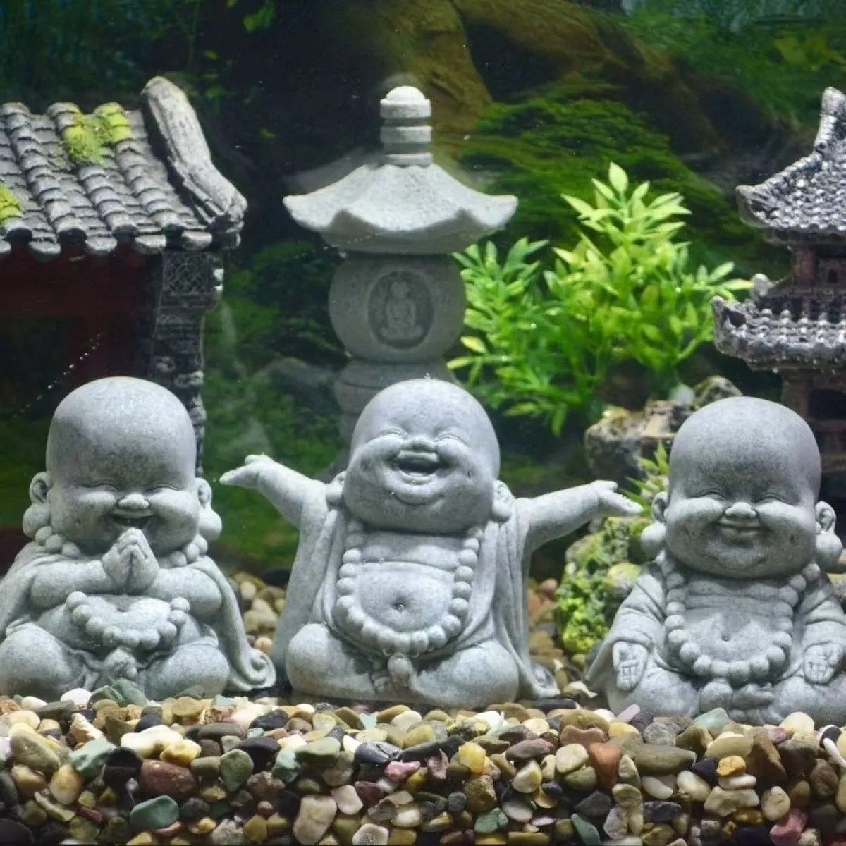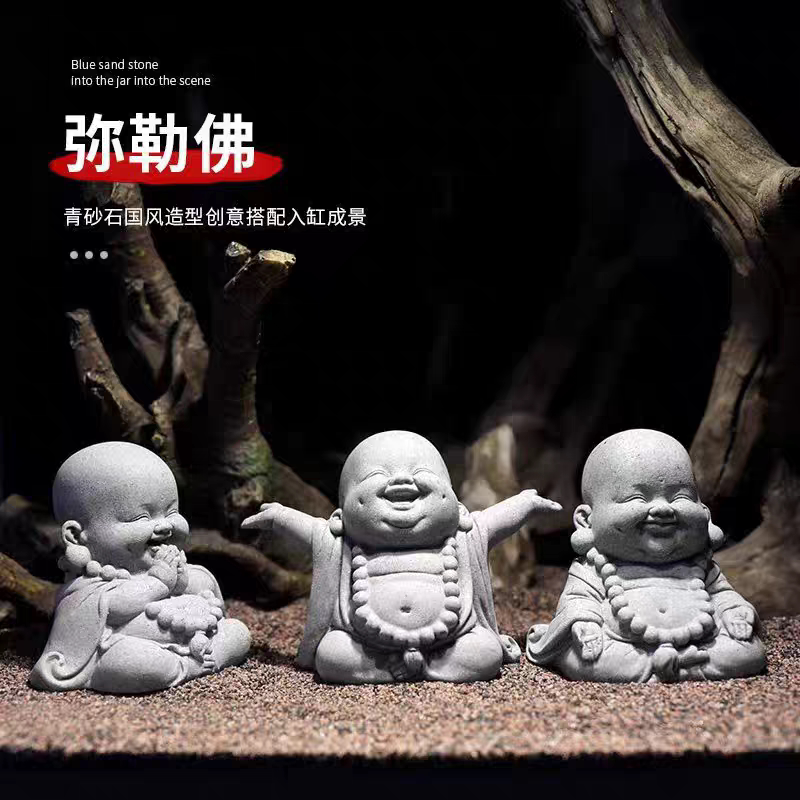 📚 青砂石开心弥勒佛摆件鱼缸水族摆件佛像盆景微景观装饰