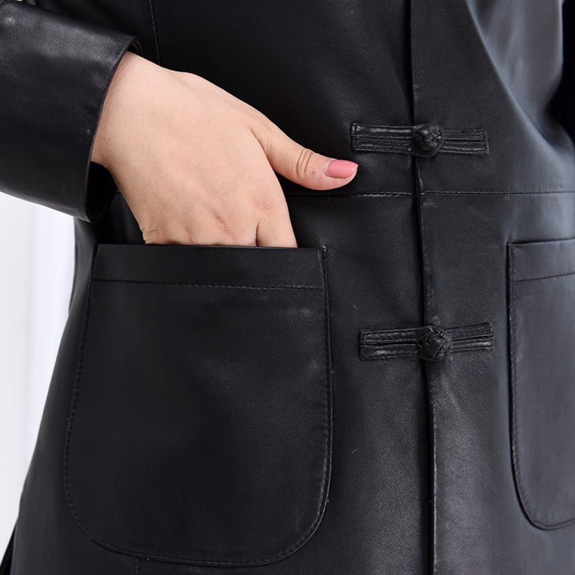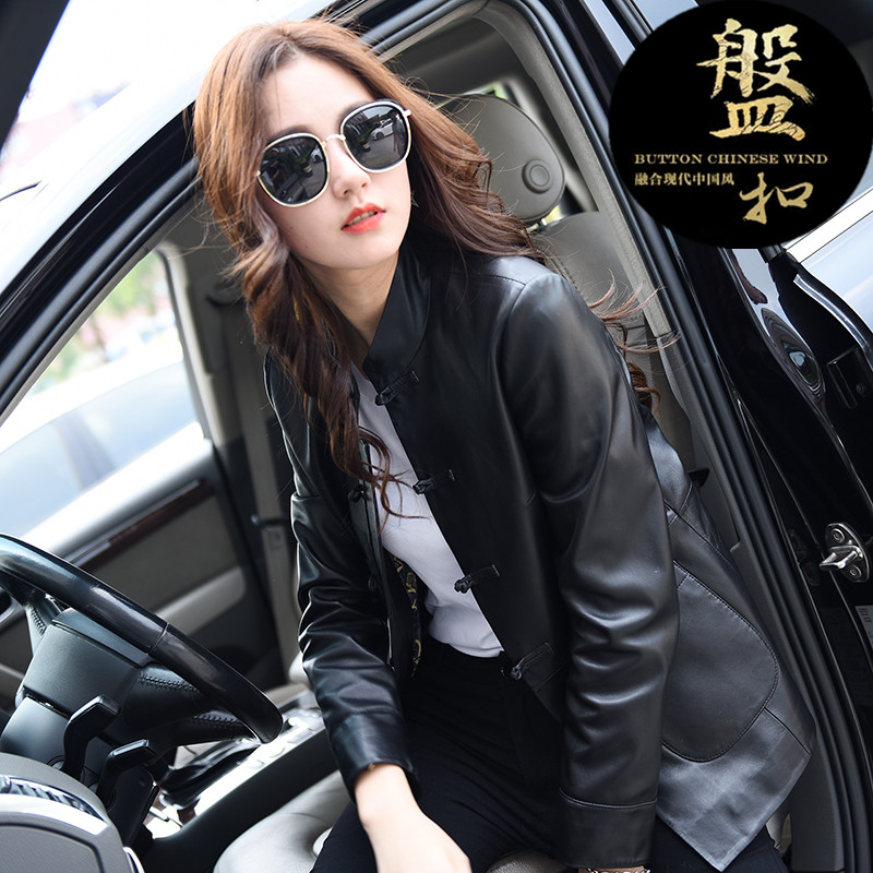 📚 真皮皮衣绵羊皮女立领夹克刘雯款复古盘扣唐装口袋羊皮外套洋气