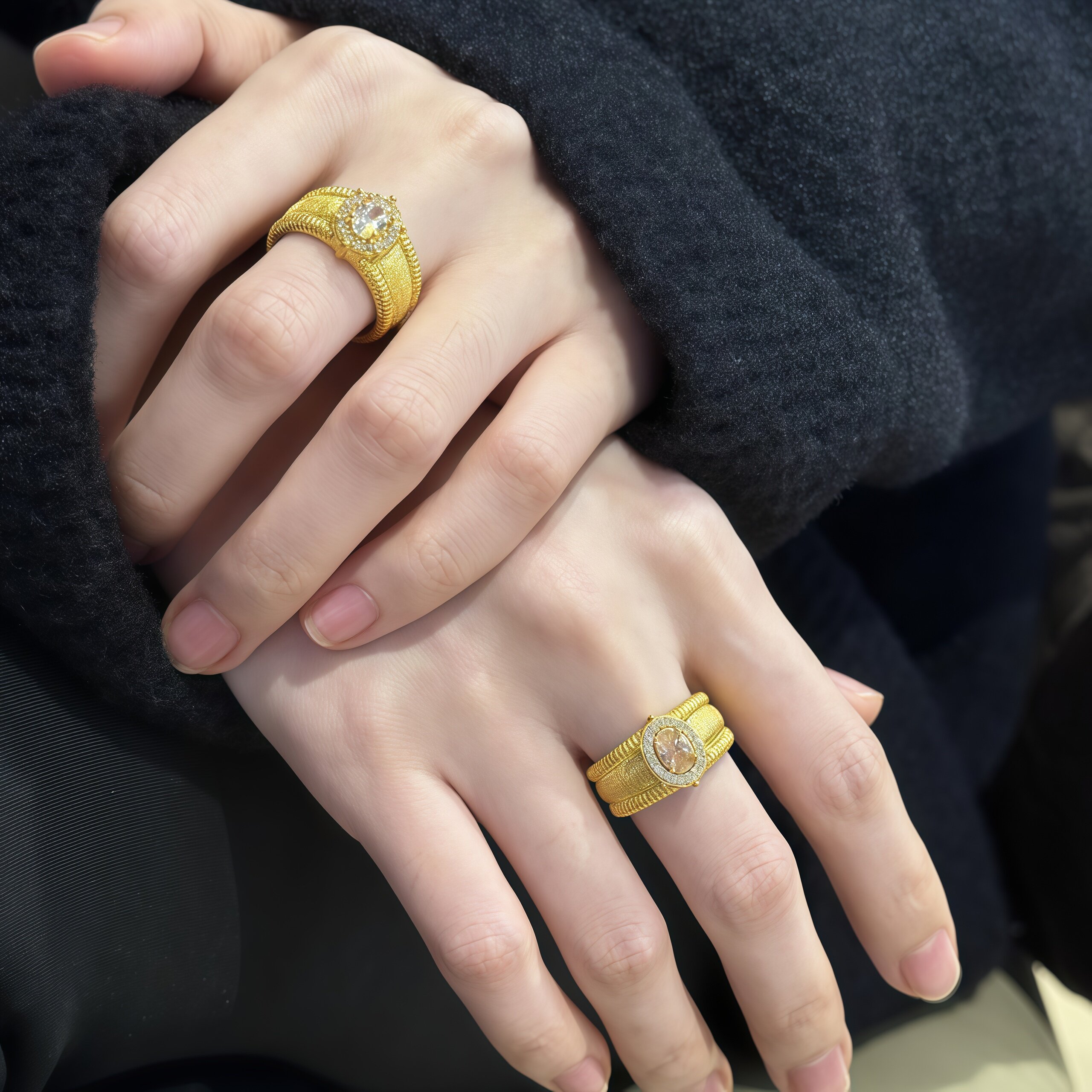 📚 十年老铺黄金包银中古风镶钻鸽子蛋戒指女闭口拉丝指环对戒七夕礼