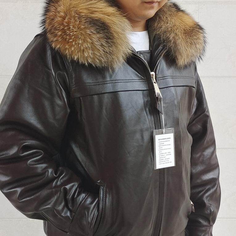 📚 02飞行皮衣男士真皮牛皮夹克棕色可选翻领拉链式02加棉飞行员皮服