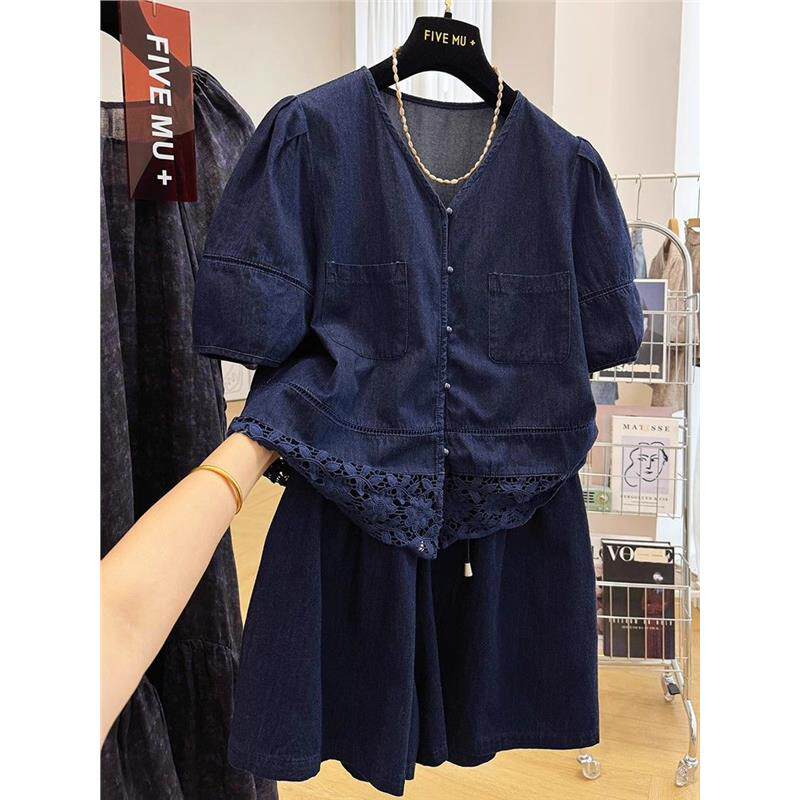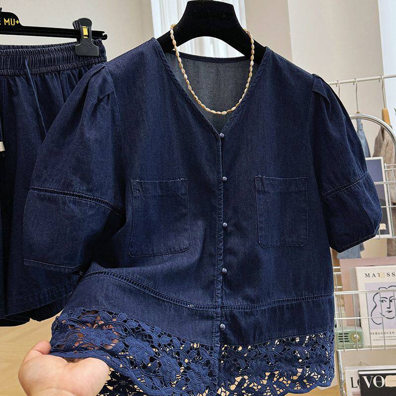 📚 气质穿搭一整套今年流行两件套短袖外套短裤牛仔时尚套装女夏季薄