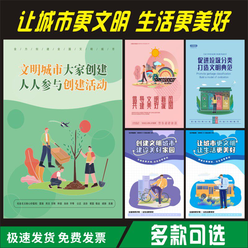 📚 创建文明城市宣传海报讲文明树新风公益广告贴画街道办黑板报墙贴