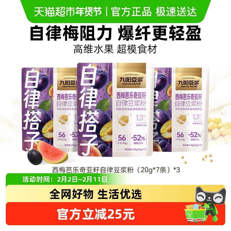 💥【王曼昱同款】九阳豆浆西梅芭乐奇亚籽自律豆浆粉!囤货装健身早餐,券后价99.9!💖