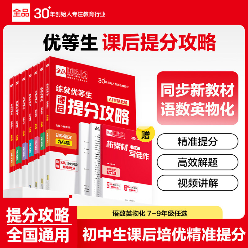 📚 2026全品初中生课后提分攻略练就优等生 语文数学英语物理化学七八九年级必刷题练习题册尖子生提优真题组合训练作业本新教材同步