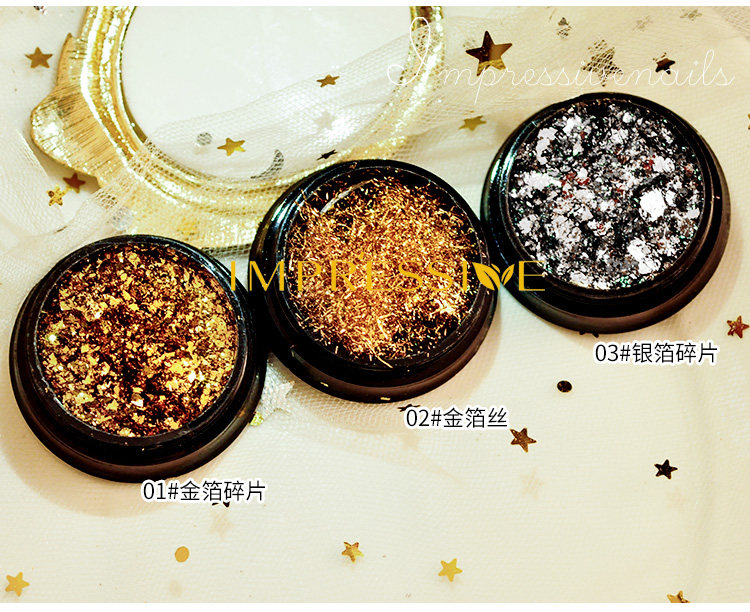 📚 美甲金银箔金纸新品指甲油胶装饰品新娘甲金箔银箔水晶光疗甲贴纸
