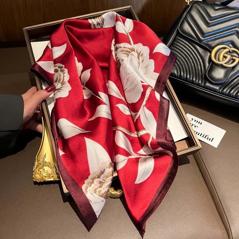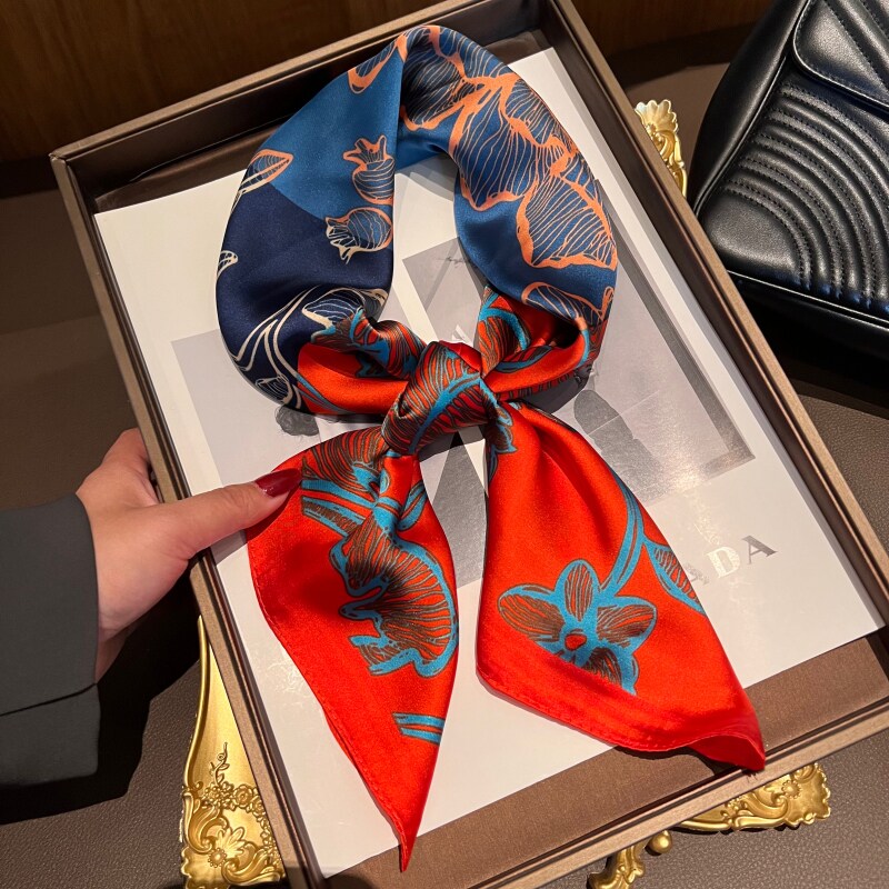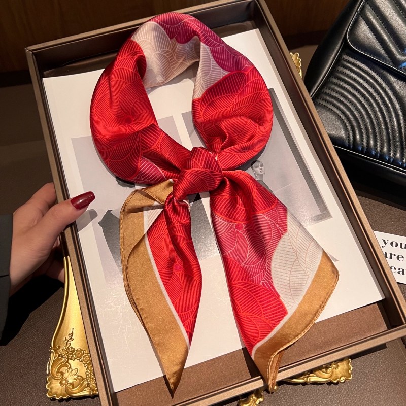 📚 2025新款丝巾气质红色小方巾百搭时尚护颈围脖妈妈洋气领巾头巾女