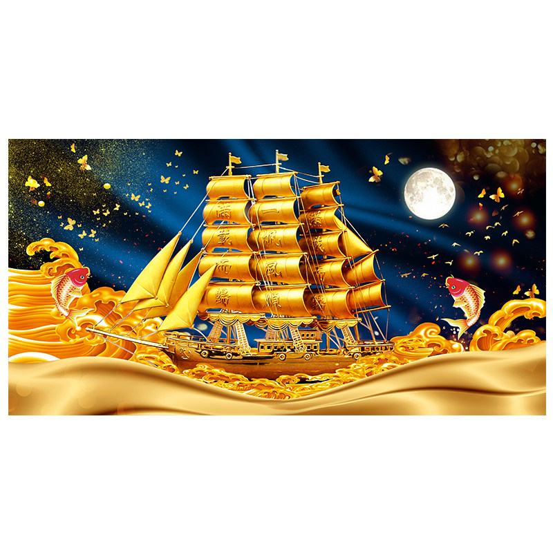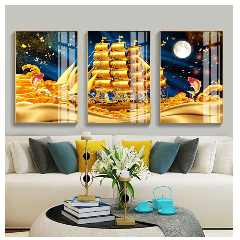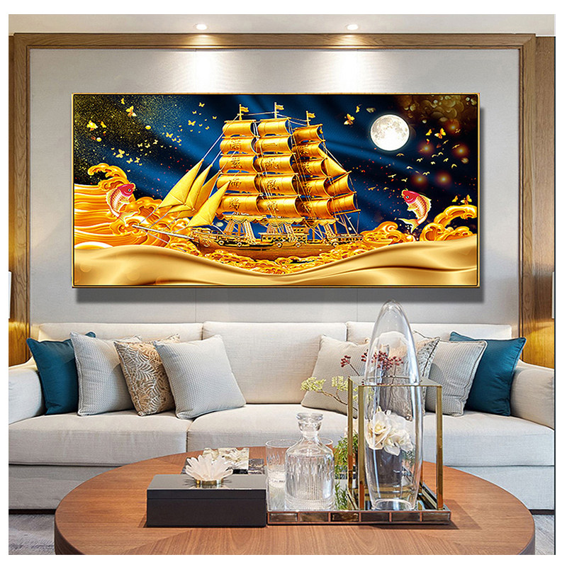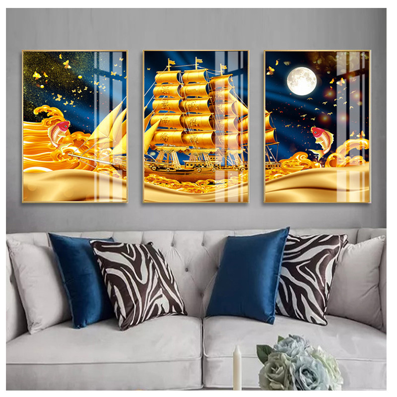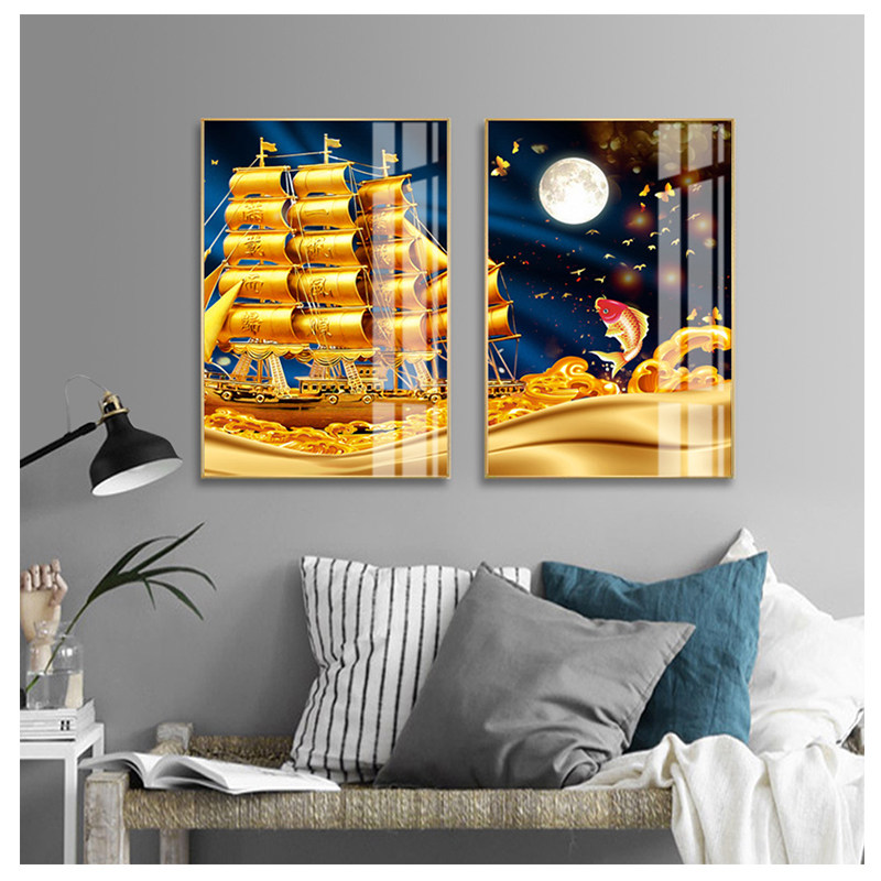📚 客厅沙发背景画一帆风顺挂画招财风水锦鲤画满载而归横幅墙画喷绘