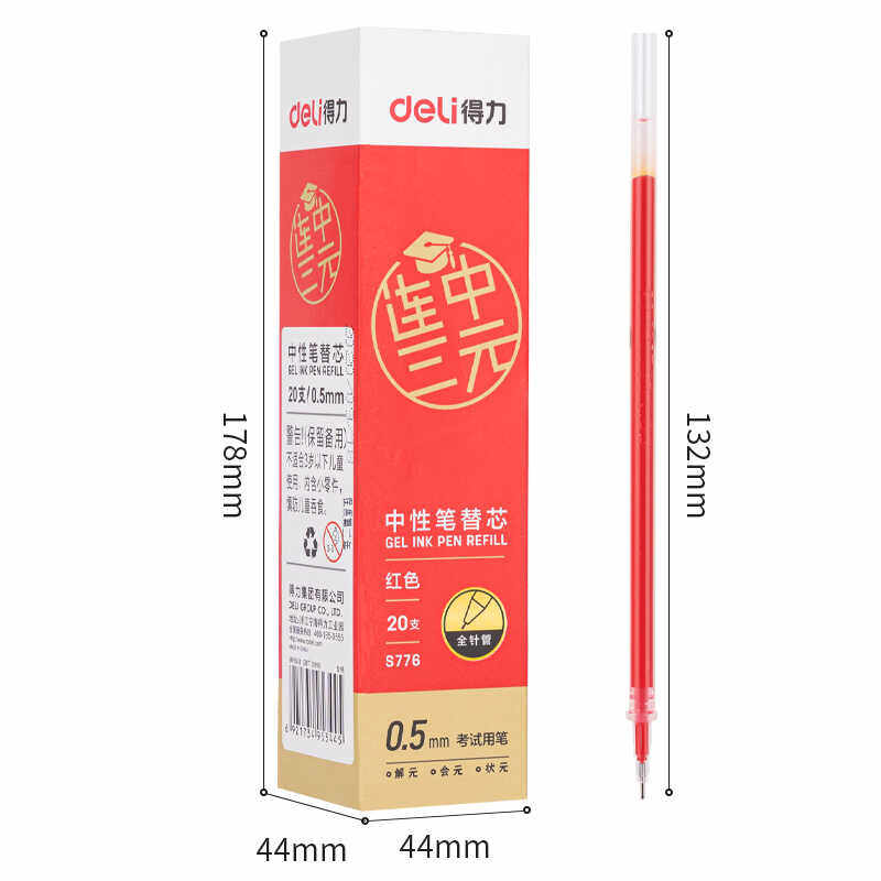 📚 得力S776拔帽款考试中性笔替芯0.5mm全针管 (红/纠错)(黑/刷题)