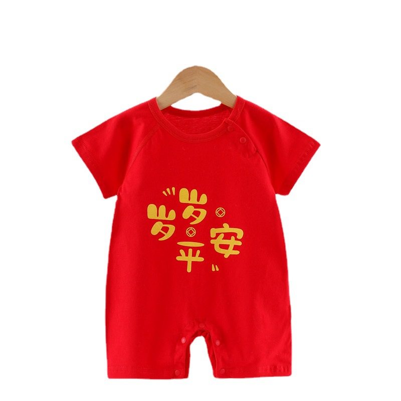 👶🏻满月啦!这个小宝贝的成长瞬间,每一件衣物都充满了温馨与期待。今天,我要给大家种草的是这款夏日新生婴儿百天衣服——纯棉夏季薄款短袖红色连体衣,简直太值得入手了!