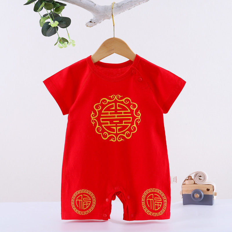 抓周连体衣满月短袖纯棉