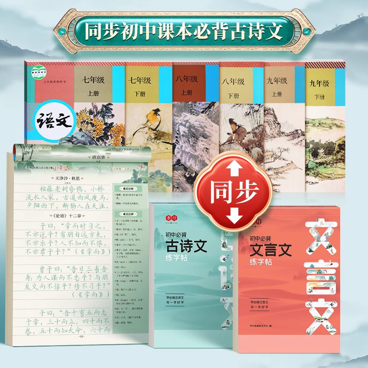 📚 初中必背古诗词和文言文字帖楷书人教版语文课本同步练字帖初中学生七年级上册下册八年级九初一二古诗文默写练字本硬笔钢笔描红本
