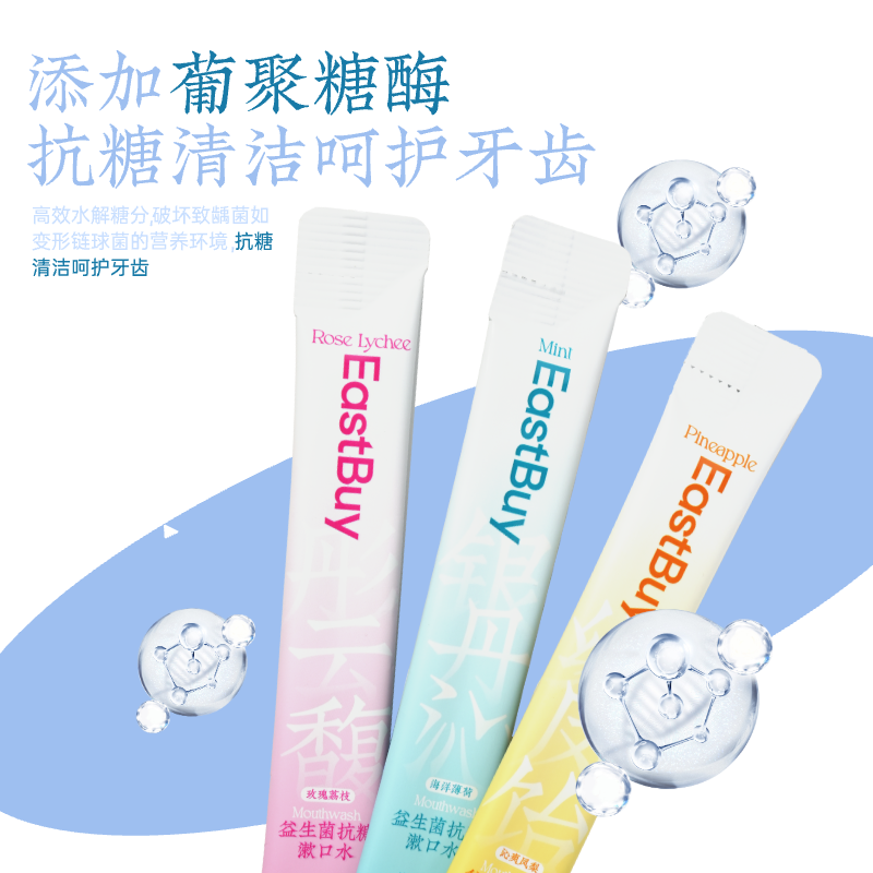 📚 东方甄选Eastbuy益生菌抗糖漱口水清新口气便携小包装多口味