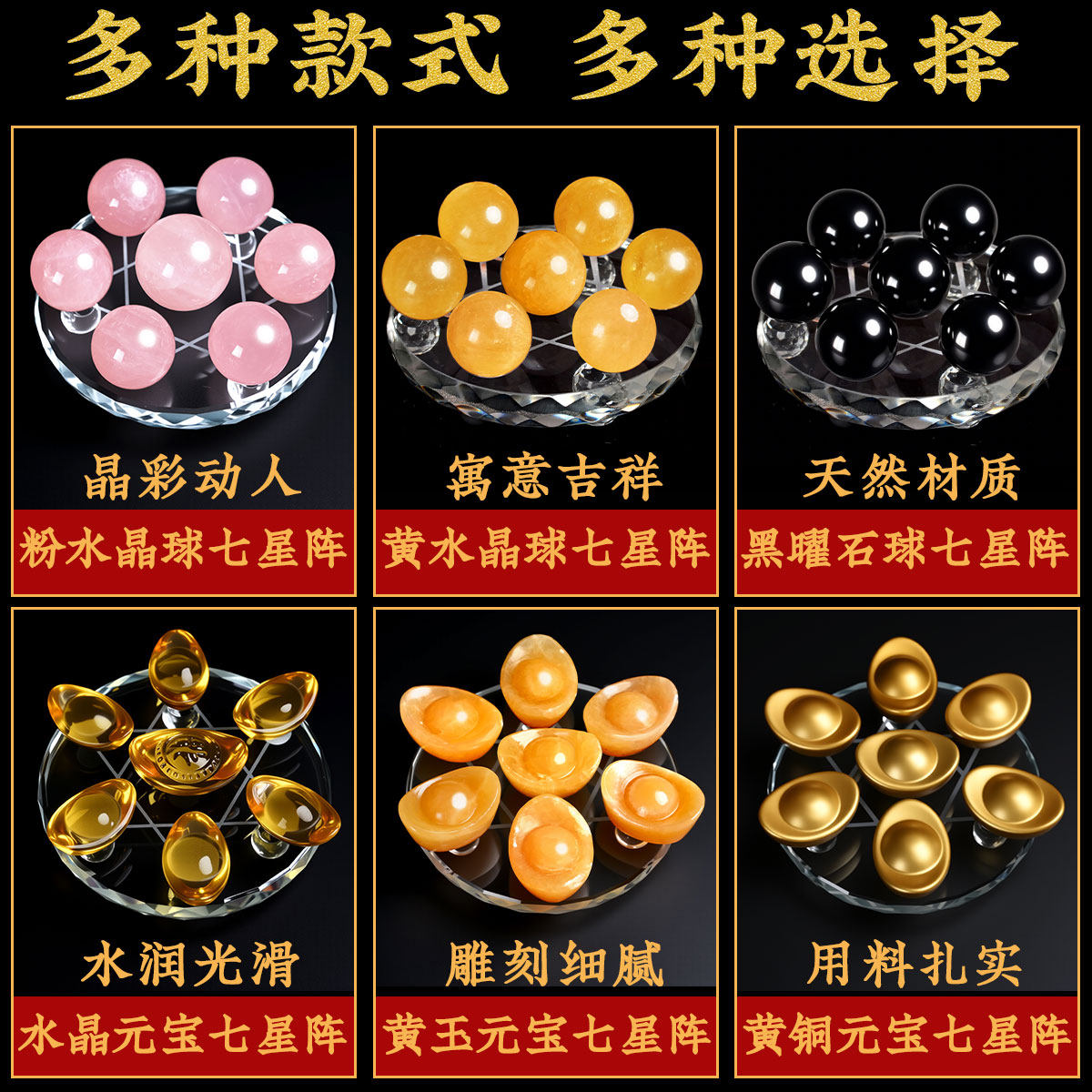 📚 黄水晶球七星阵摆件方解石开业店铺家居书桌玄关摆设装饰品送礼物