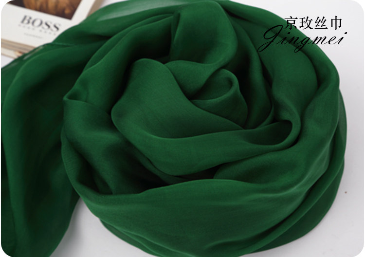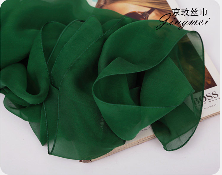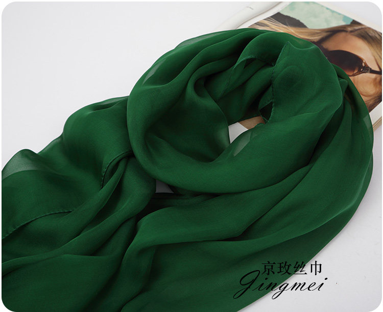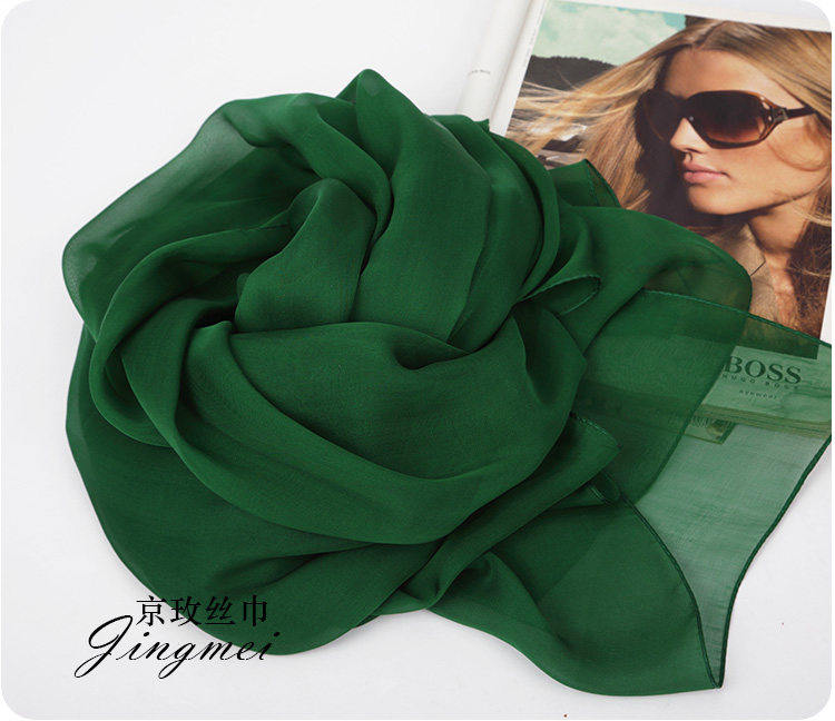 📚 墨绿色纯色桑蚕丝真丝丝巾长款围巾女大披肩薄丝绸纱巾春秋冬夏季