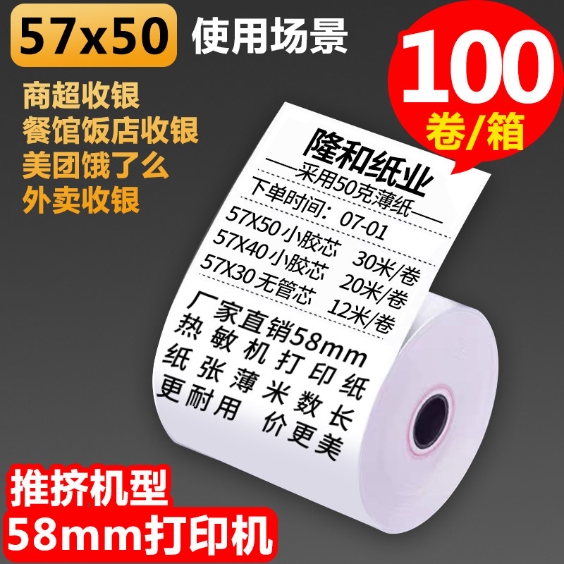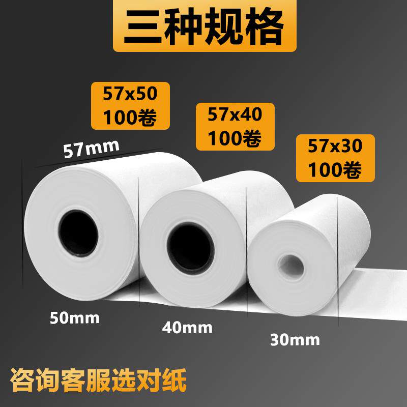 📚 57x50收银纸57x40x30热敏纸58mm打印小票纸餐厅收款纸超市外卖纸