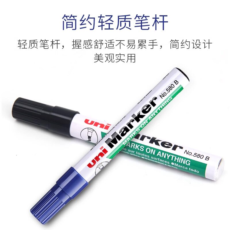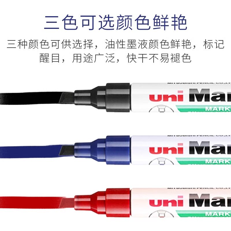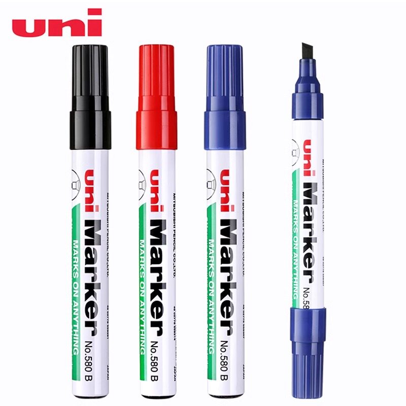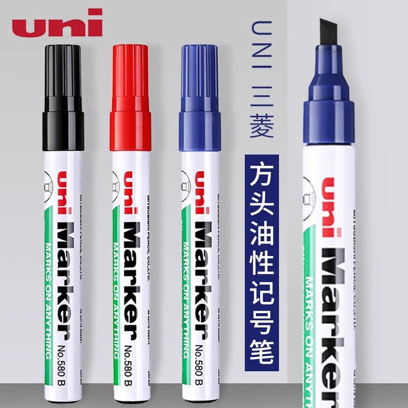 📚 日本uni三菱580B记号笔黑色油性斜头大头笔方头绘画涂鸦笔彩色快干不易掉色划重点标记笔 马克笔