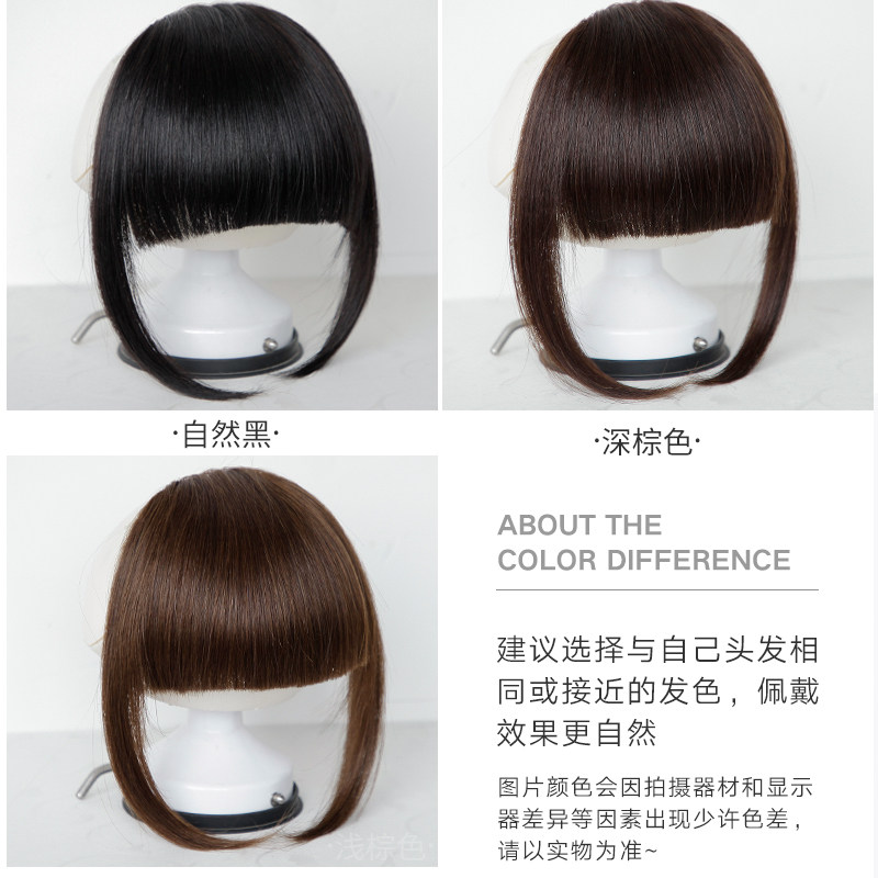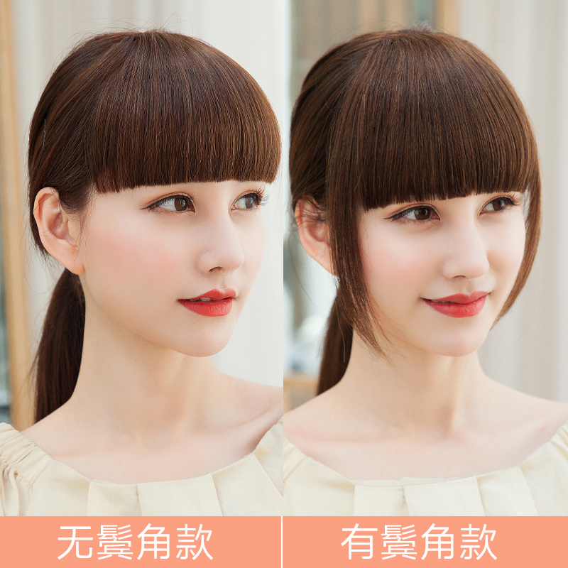 📚 加厚齐刘海假发片真发刘海假发女假刘海自然前额流海发片真人发丝