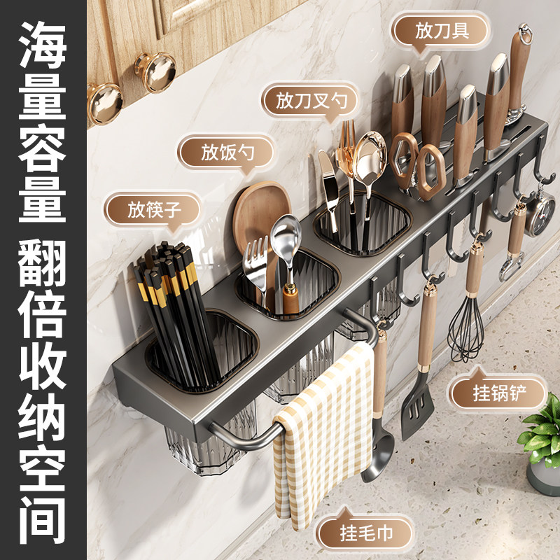 📚 筷子筒刀架一体收纳架厨房壁挂式免打孔刀具置物架菜刀筷筒勺挂架
