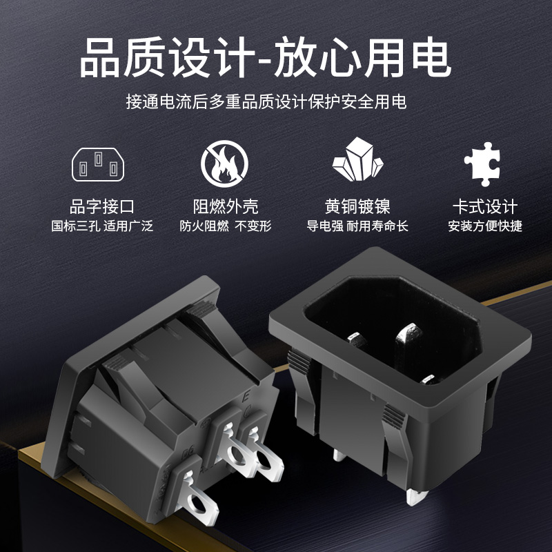 📚 卡位嵌入式ac电源品字插座电水壶插座10A250V三脚实心铜电源插座