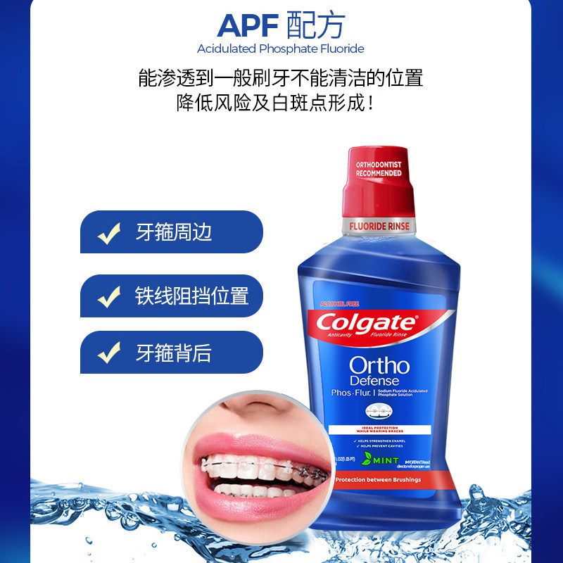 📚 Colgate高露洁正畸漱口水含氟杀菌除口臭防蛀再矿化牙套专用便携