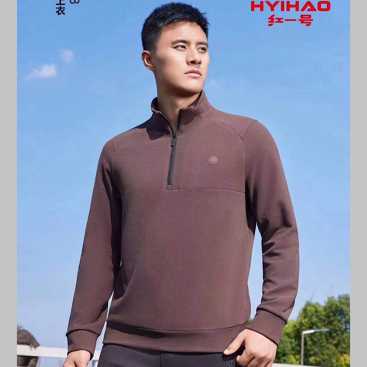 📚 红一号半拉链卫衣男秋冬新款套头T恤打底衫长袖立领休闲上衣26938