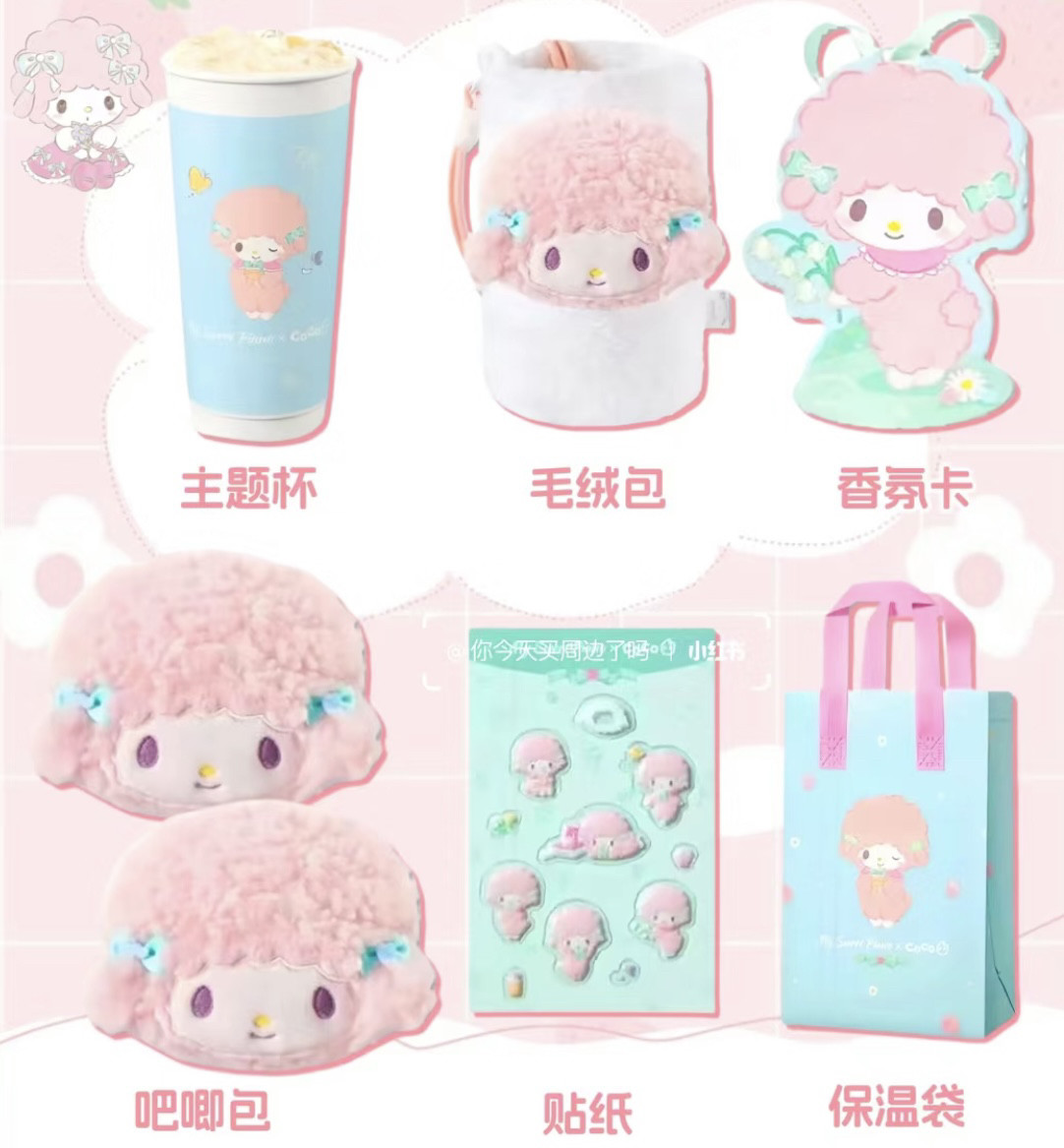 📚 coco都可联名三丽鸥piano小羊周边毛绒包吧唧包玉桂狗奶茶杯