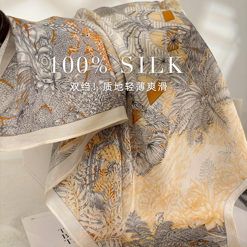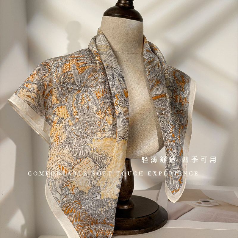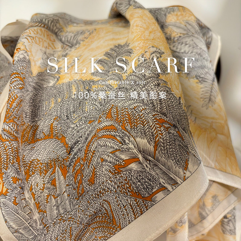 📚 「雅致雨林」双绉真丝丝巾女春夏季100%桑蚕丝围巾多功能装饰领巾