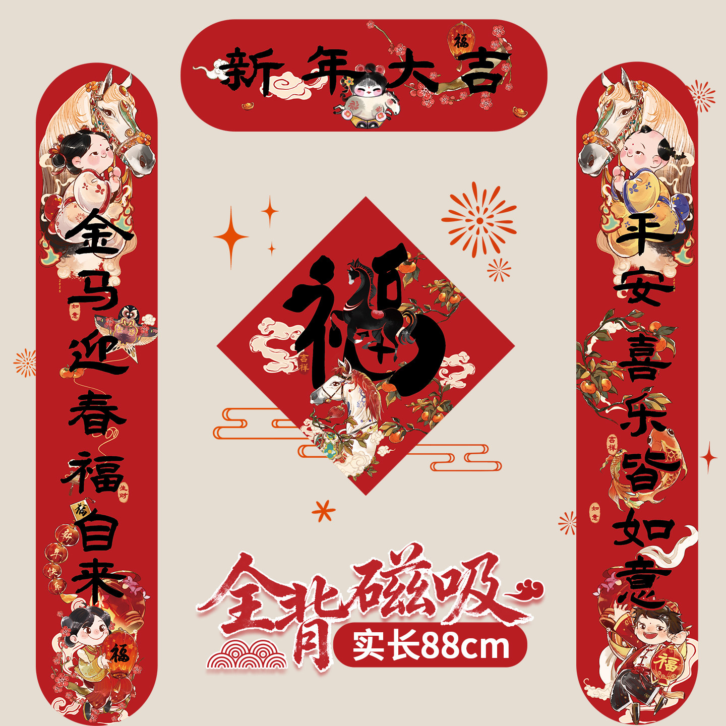 📚 全磁吸对联大尺寸春联马年2026入户门新款门贴春节新年国潮国风